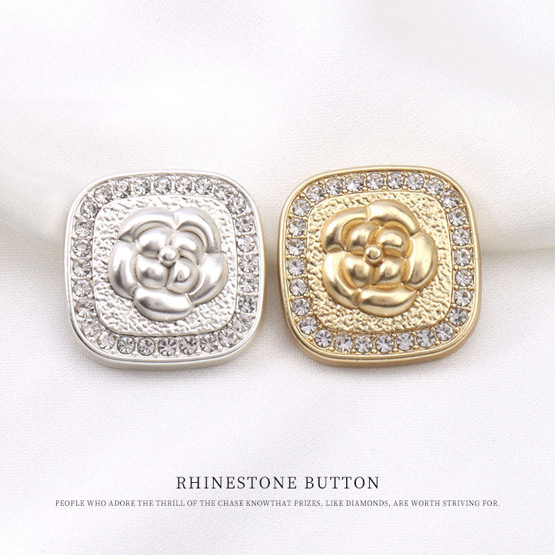 17,5/20/23mm Χρυσά Ασημένια Υψηλής Ποιότητας Γαλλικού Στυλ Τετράγωνα Μεταλλικά Κουμπιά με Διαμάντια για Παλτά και Vintage Εξωτερικά Ρούχα 12τεμ