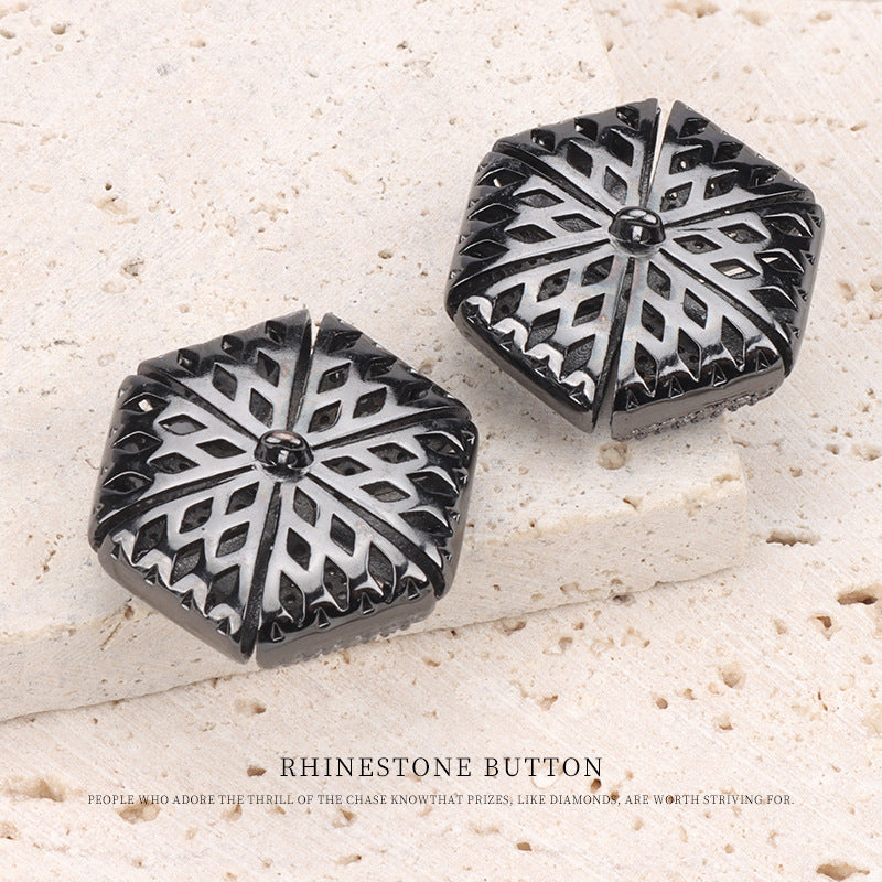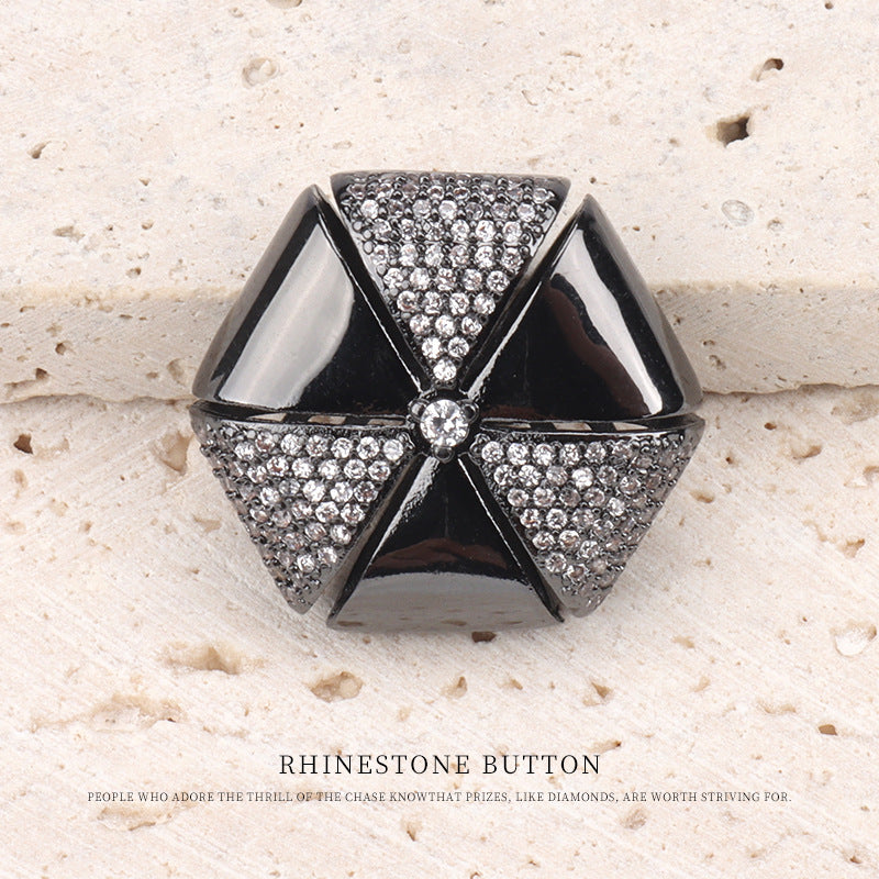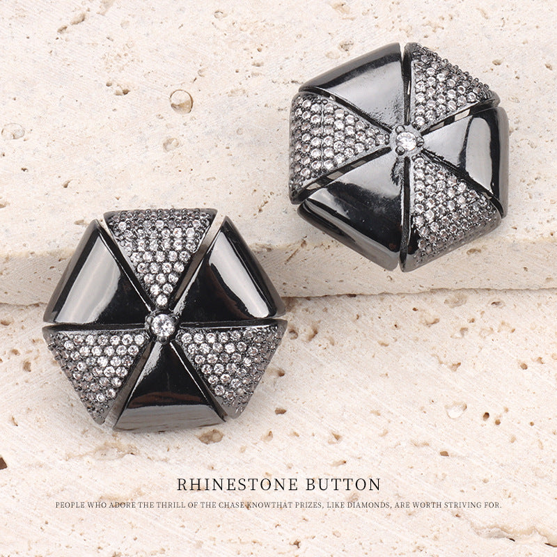 Gunmetal Black Copper Hollow Inlaid with Diamonds Button - Κουμπιά για Γούνες, Μάλλινα Παλτά και Αδιάβροχα - Κουμπιά για Ζακέτες Πουλόβερ 2 τεμ