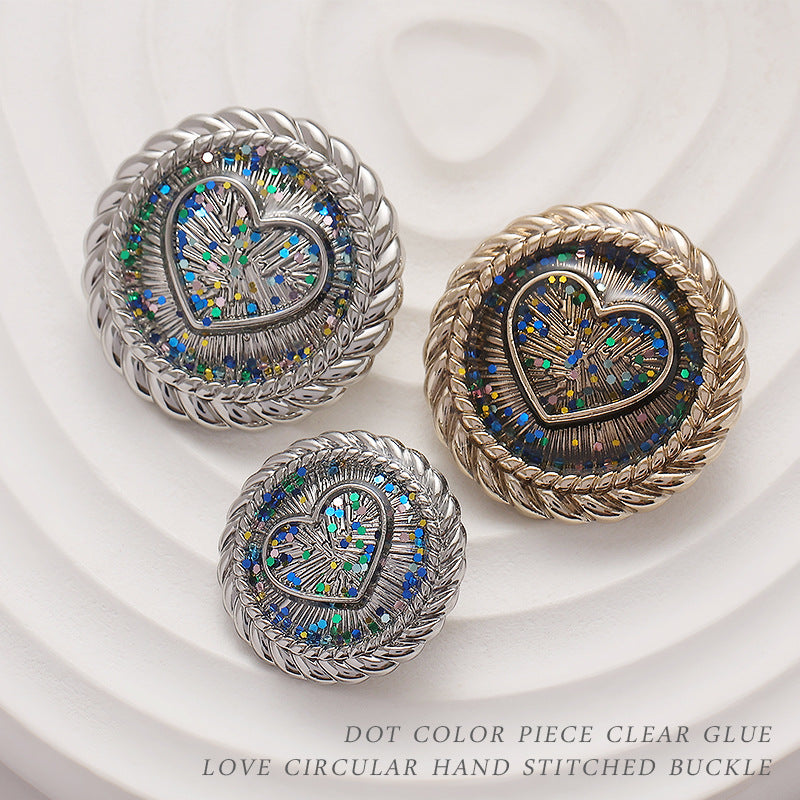 Κουμπί Μεταλλικό με Καρδιά Αγάπης και Αστερόσκονη Χρώματος 6 τεμ.