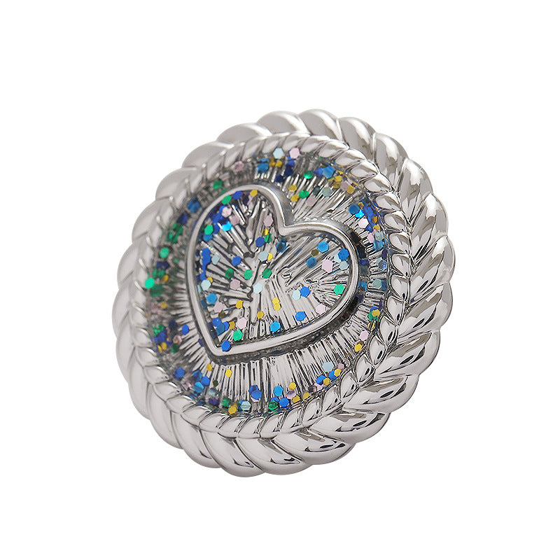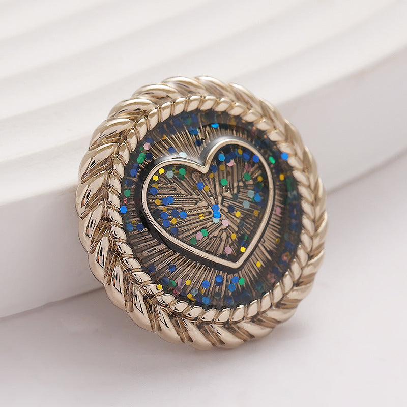 Είτε θέλετε να προσθέσετε μια πινελιά χρώματος σε ένα απλό ντύσιμο είτε να δημιουργήσετε ένα ξεχωριστό κομμάτι για δώρο, αυτό το μεταλλικό κουμπί με αστρικό χρώμα, με στίγματα διαφανούς κόλλας και σχήμα καρδιάς αγάπης είναι η τέλεια επιλογή. Αφήστε το να φέρει μια νότα μαγείας και ομορφιάς στη ζωή σας.