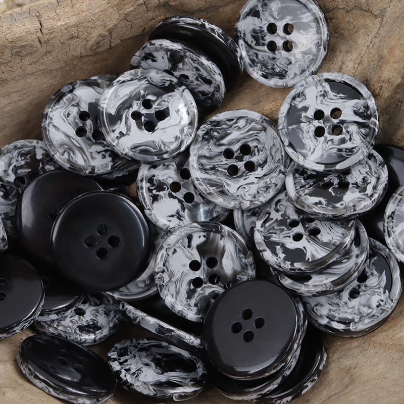 Στρογγυλά κουμπιά από ρητίνη με τέσσερις τρύπες σε μαύρο, λευκό και γκρι με εφέ μελάνης, πακέτο 30 τεμαχίων