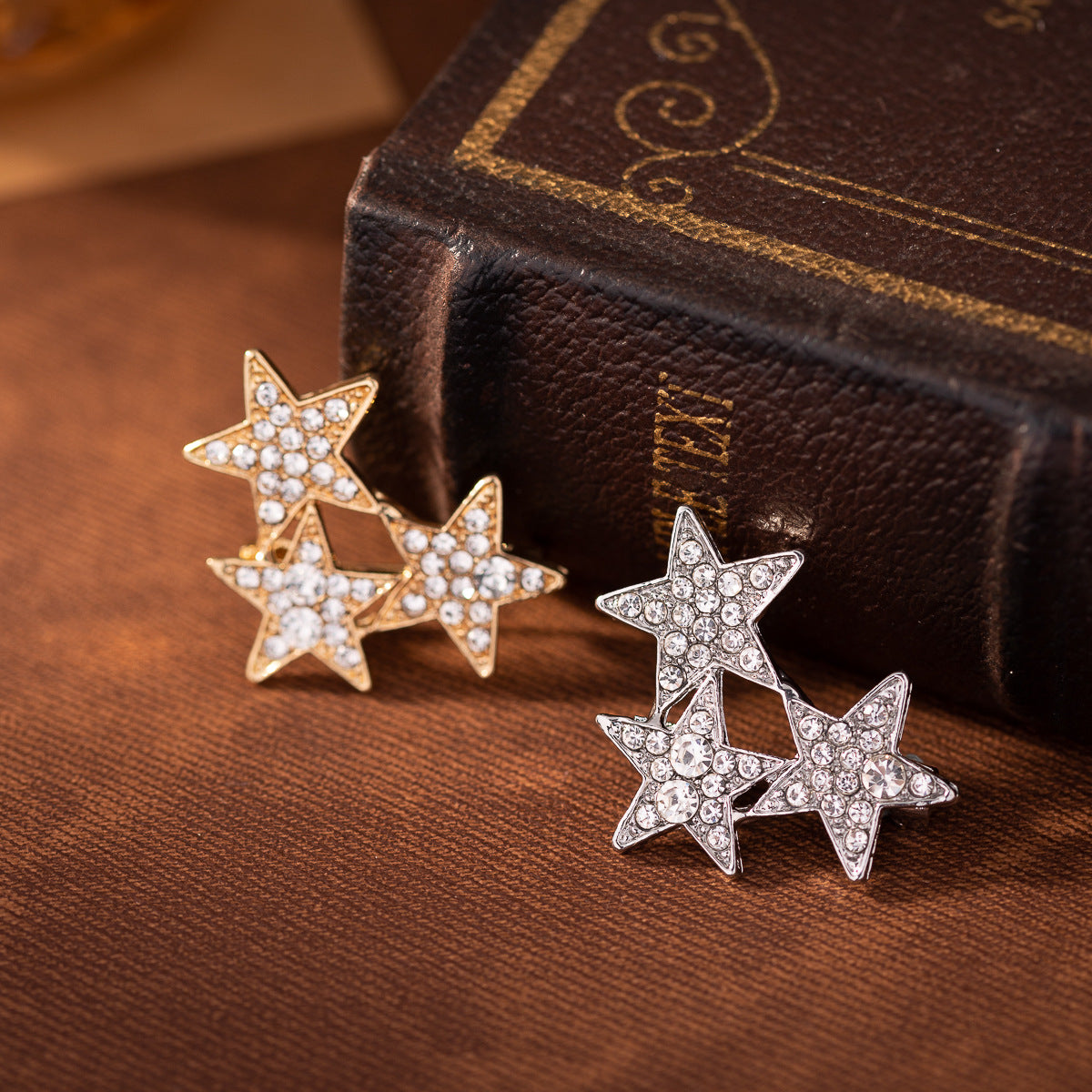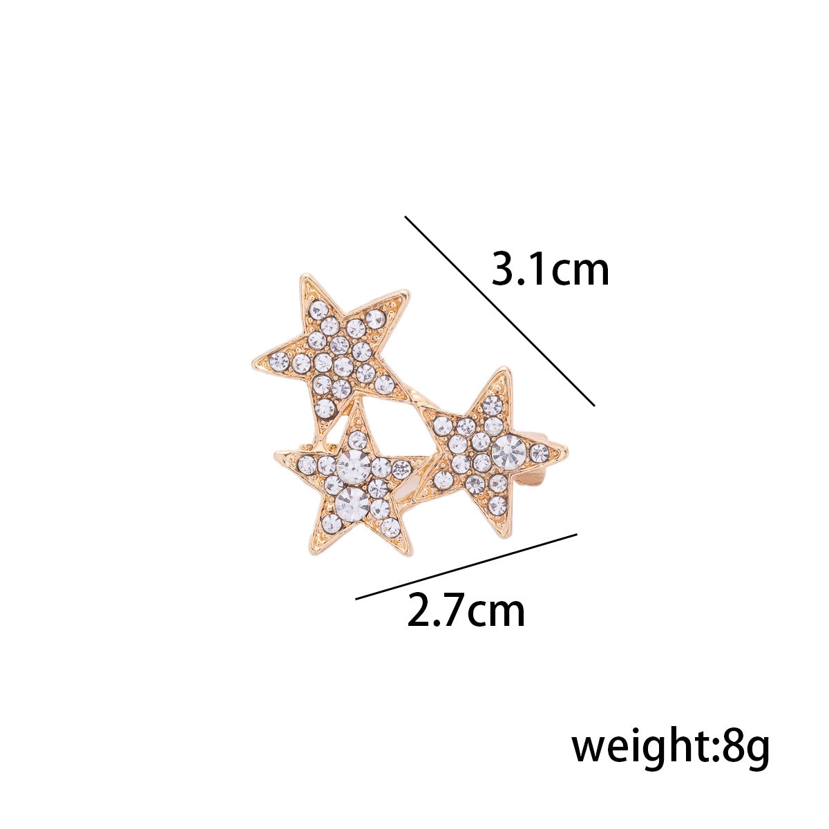 Καρφίτσα με Τρία Πεντάκτινα Αστέρια Διακοσμημένα με Διαμάντια - Καρφίτσα Πέτου Κοστουμιού για Άνδρες 3 τεμ.