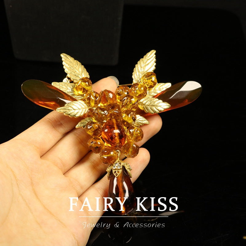Διακοσμήστε τις εμφανίσεις σας με την Vintage Courtly Winged Amber Bead Brooch μας. Αυτή η γοητευτική καρφίτσα διαθέτει ένα λεπτεπίλεπτο σχέδιο φτερού, κατασκευασμένο από υλικά υψηλής ποιότητας και διακοσμημένο με χάντρες σε χρώμα κεχριμπαριού. Ο vintage εμπνευσμένος σχεδιασμός προσθέτει μια νότα διαχρονικής κομψότητας σε οποιοδήποτε ένδυμα. Ιδανική για σακάκια, παλτά και φορέματα, αυτή η καρφίτσα είναι ένα ευέλικτο αξεσουάρ τόσο για καθημερινή όσο και για επίσημη ενδυμασία. Με την ανθεκτική κατασκευή και τον εντυπωσιακό σχεδιασμό της, αποτελεί ιδανική επιλογή για όσους εκτιμούν την παραδοσιακή τεχνική και τα μοναδικά αξεσουάρ μόδας.