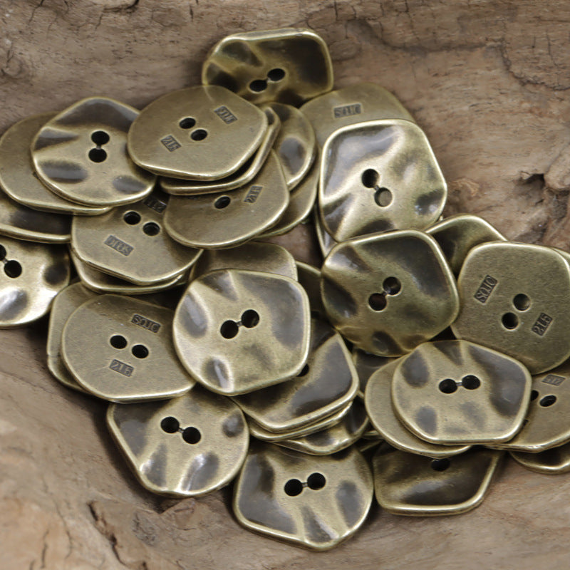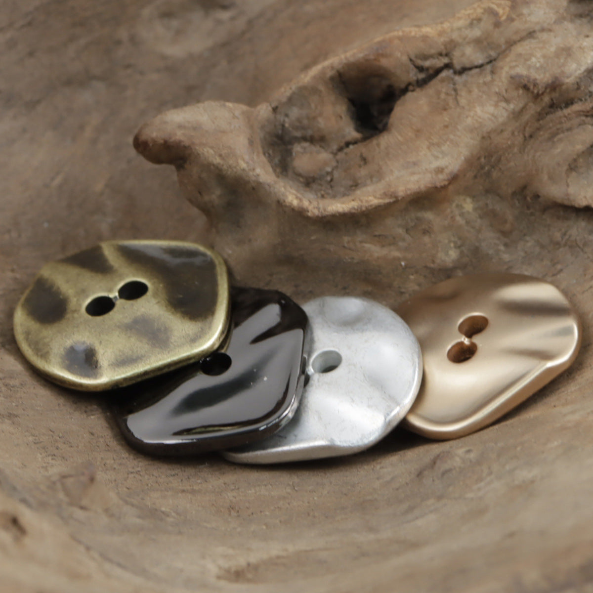 Η κατασκευή από κράμα ψευδαργύρου εξασφαλίζει ανθεκτικότητα και υψηλής ποιότητας φινίρισμα. Το ακανόνιστο σχήμα δίνει σε αυτά τα κουμπιά μια χειροποίητη και μοναδική εμφάνιση, ξεχωρίζοντας τα παλτά σας από τα υπόλοιπα.