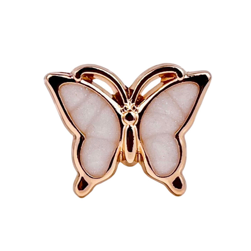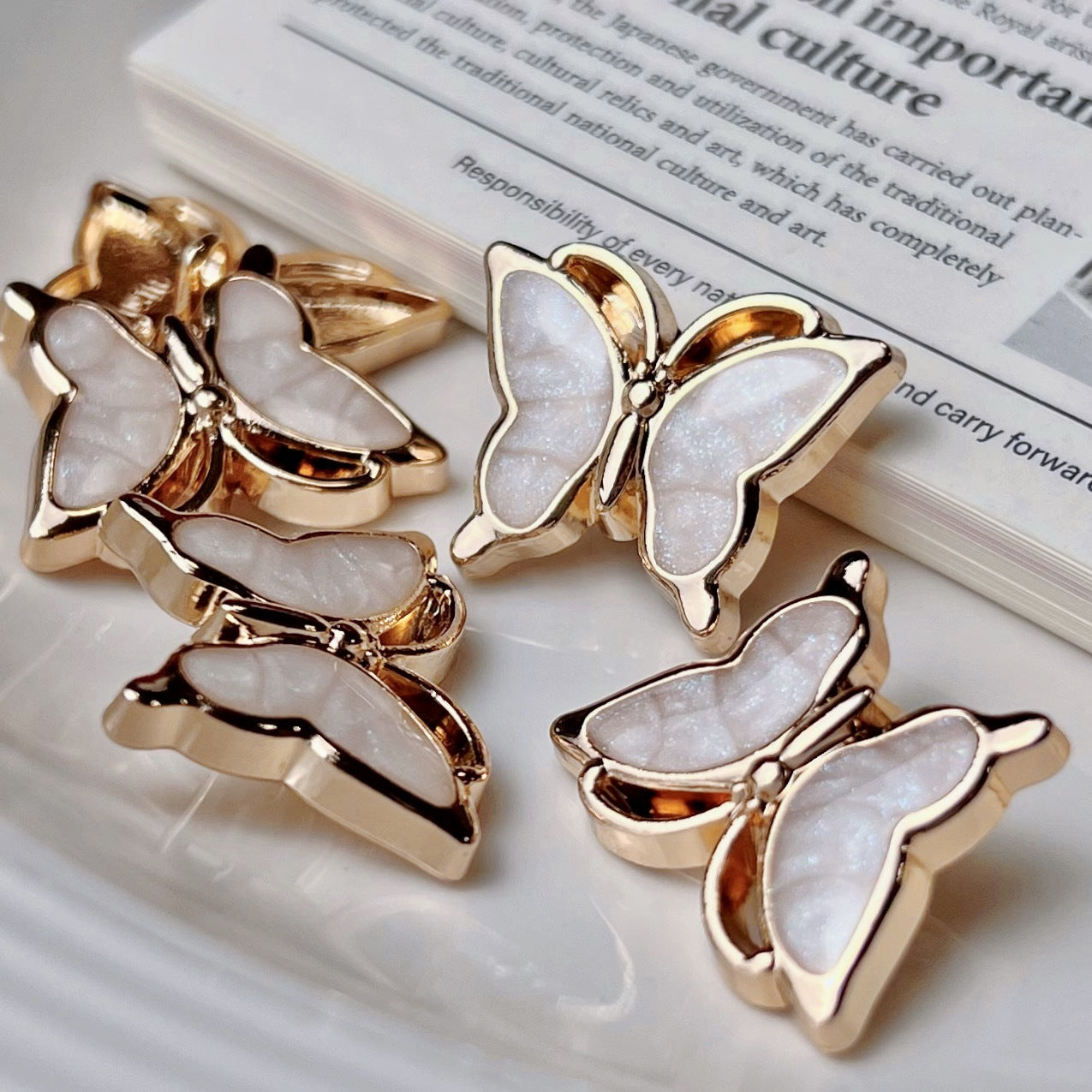Botones de metal con shank en forma de mariposa 3D de 25MM en perla blanca rosa claro, 10 piezas