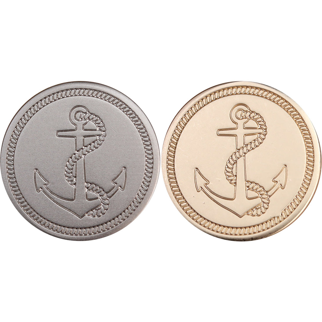 Roosakuldne ja läikiv hõbedane ankrumetallist nööp 12 tk