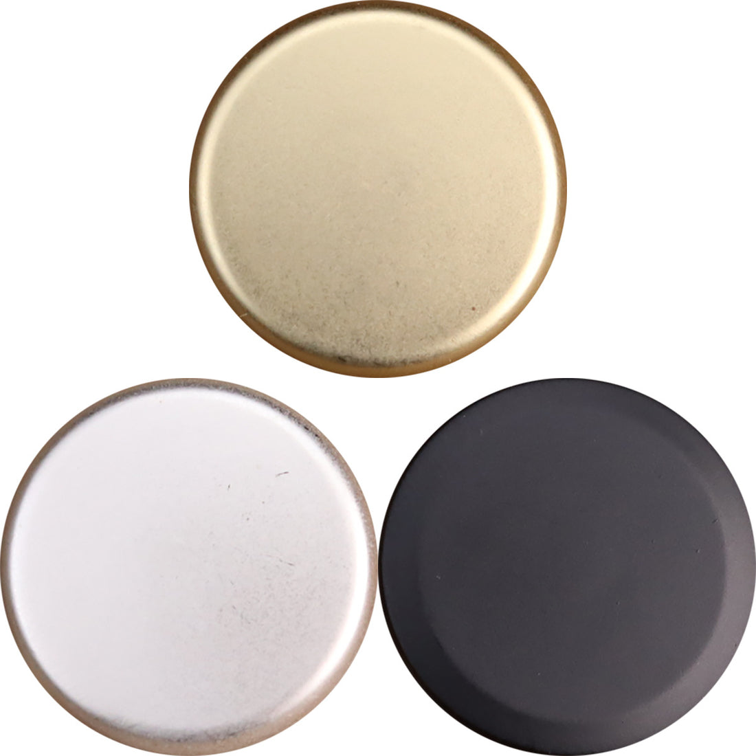 Matte viimistlusega musta, hõbeda ja kullaga lamedad metallnööbid teksatakkidele 18 pakis