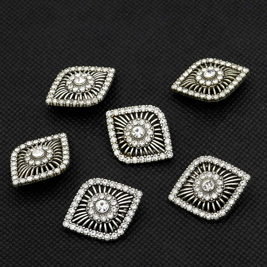 25x30.5mm antiikhõbedased õõnsad silma kujulised kivikestega nööbid