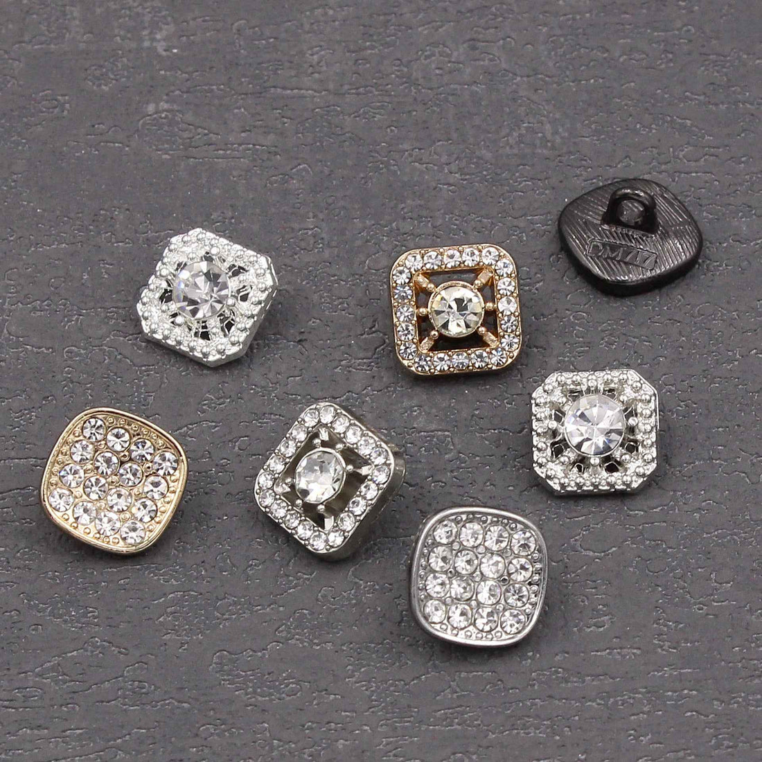 Luksuslik metallist hall kristallist ristkülikukujulised punkt-auguga käsitsi õmmeldavad nupud 12 tk