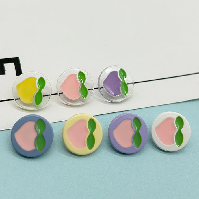 15/18mm värvilised multifilmilikud virsiku mustriga plastnööbid varrastega 70 pakis