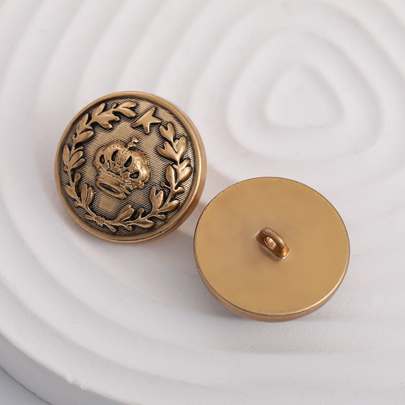 15-23mm Briti antiik-kuldne kroon ja tammelehe metallnupp 10 tk
