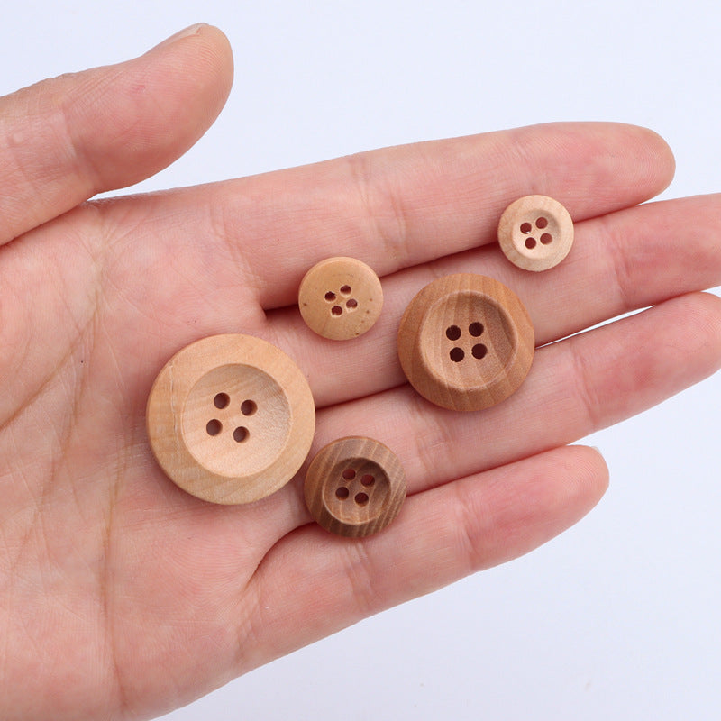 11.5 - 25mm ümmargused 4-auguga looduslikud puidust nööbid originaalses puiduvärvis kvaliteetsetele mantlitele, trentšmantlitele ja särkidele 40 tk