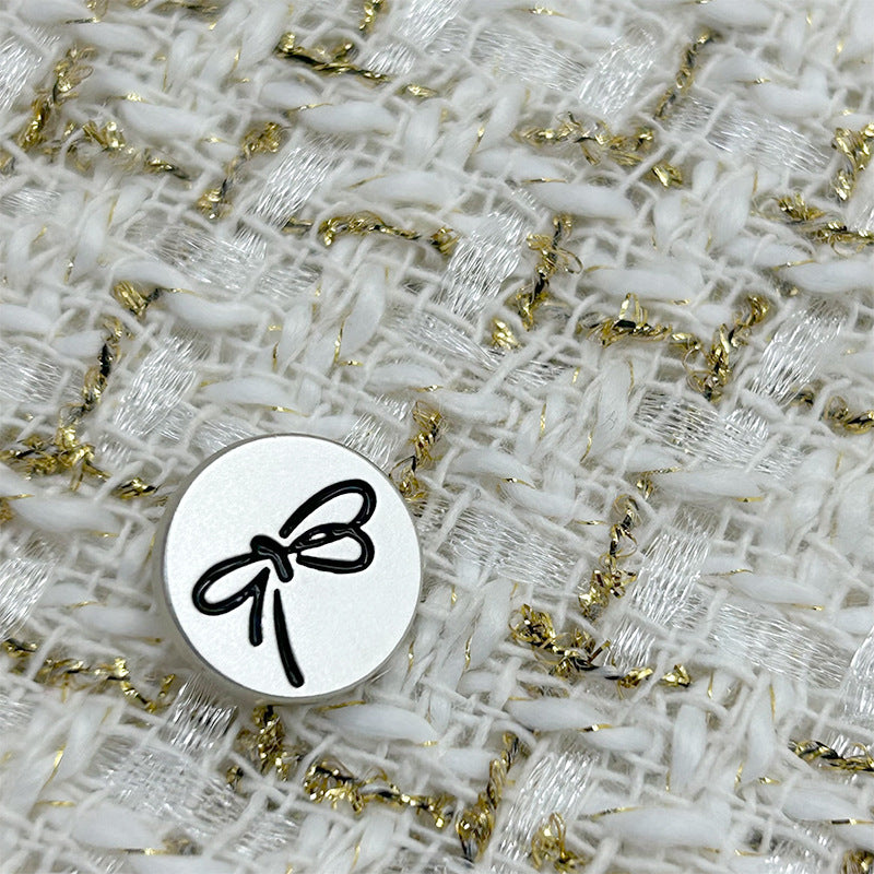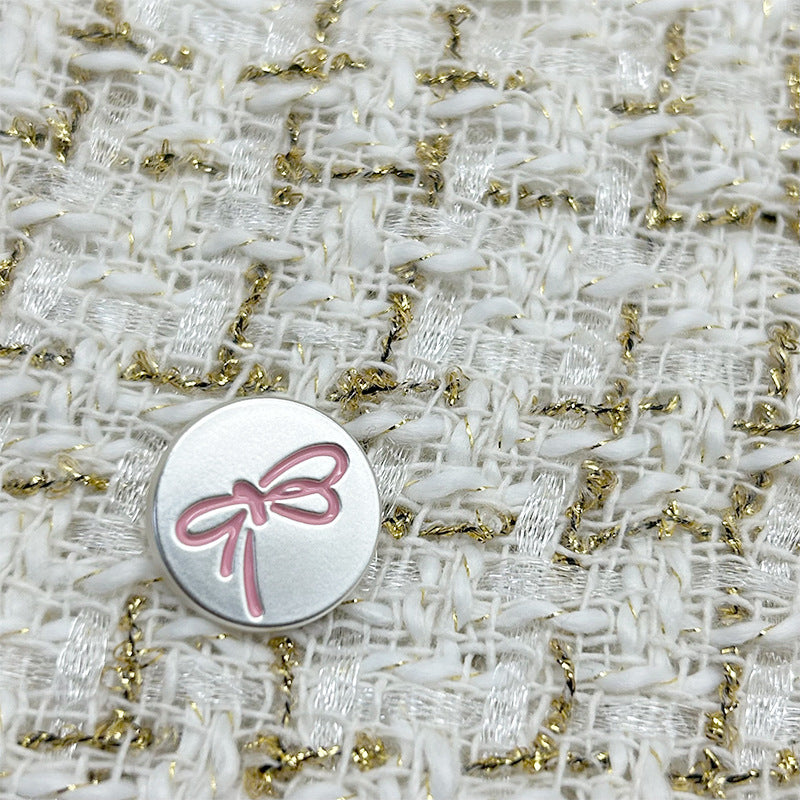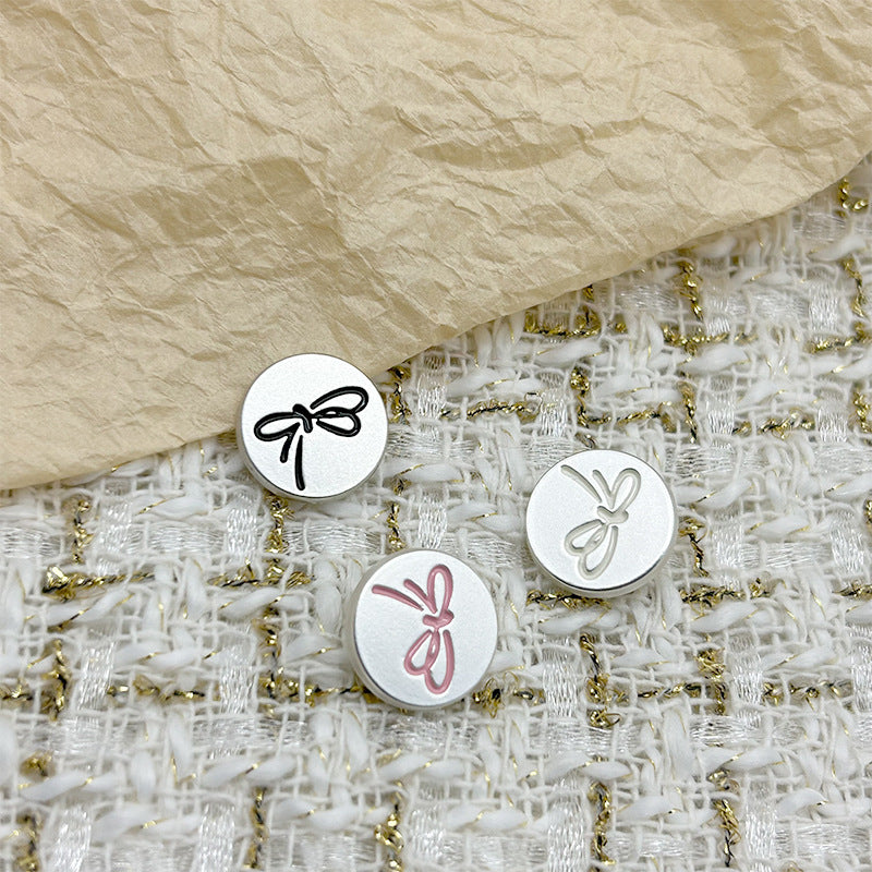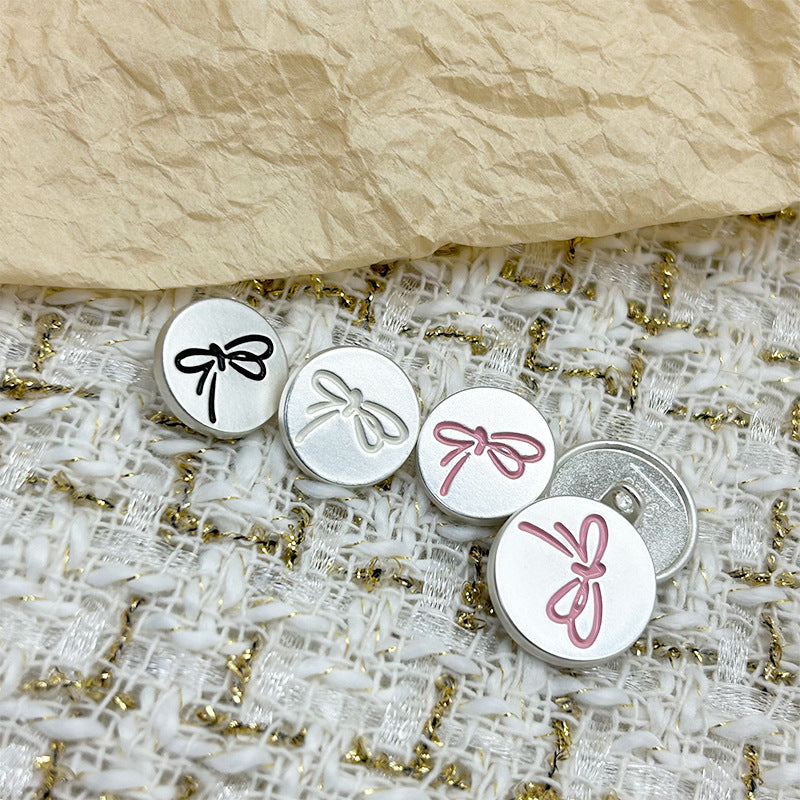 Need metallist nööbid, suurustega 15mm, 18mm ja 20mm, kannavad võluvat maalitud lipsusõlme mustrit. Lame pind pakub stiilset ja modernset välimust. Värvikiht on detailne ja elav, lisades elegantsi ja naiselikkust. Nööbikangidega on neid mugav õmmelda erinevatele kangastele. Ideaalne kleitide, pluuside või isegi dekoratiivsete aksessuaaride jaoks. Need võivad täiustada eseme üldist esteetikat, olgu see siis ametlikuks sündmuseks või vabaaja päevaks. Unikaalne lipsusõlme disain teeb neist stiilse valiku, mis paistab silma oma peene kunstipärasuse ja praktilise funktsionaalsusega.