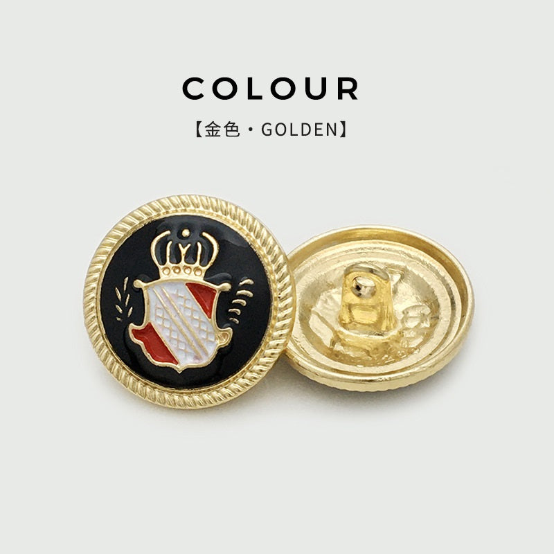 Need metallnööbid, suurusega 15 kuni 25 mm, on loodud lisama igale rõivaesemele kuninglikku võlu. Inspireeritud klassikalisest Briti esteetikast, kiirgab ümmargustel nööpidel olev kroonimotiiv elegantsi ja rafineeritust. Nööbid on varustatud tugeva varrega, mis teeb nende kinnitamise erinevatele kangastele lihtsaks, olgu selleks siis paks villane mantel või õrn puuvillane särk. Kõrgekvaliteediline metallkonstruktsioon tagab vastupidavuse ja läikiva viimistluse, mis aja jooksul ei tuhmu. Need sobivad ideaalselt erinevate rõivaesemete viimistlemiseks, alates ametlikest ülikondadest kuni vabaaja jakkideni, võimaldades kandjal näidata oma peent maitset ja armastust ajatu Briti stiili vastu. Oma detailse kroonidisaini ja praktilise varrega on need nööbid nii funktsionaalne kui ka dekoratiivne täiendus igasse garderoobi.