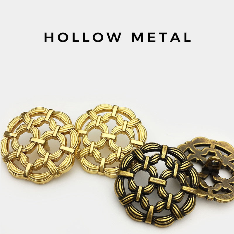 Iga nupp on varustatud hoolikalt valmistatud õõnsa lillekujundusega. Lilleõite keerukad mustrid loovad sügavuse ja mõõtme tunde, suurendades nende visuaalset atraktiivsust. Metallkonstruktsioon tagab vastupidavuse, samas kui kinnitatud varred muudavad nende õmblemise rõivastele lihtsaks.
