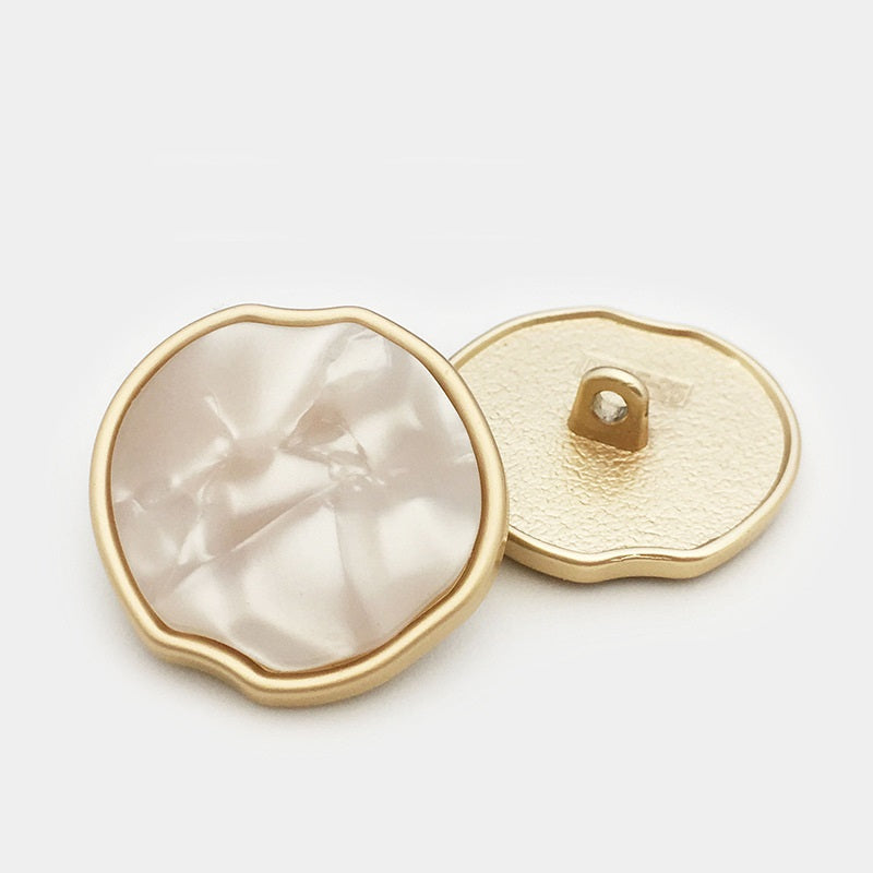 Need pilkupüüdvad metallist nupud on ainulaadne lisa igale välisriietusele või kardiganile. Saadaval suurustes 17.5mm, 22.5mm ja 25mm, eristab neid ebatavaline õuna kuju. Disain on inspireeritud looduse asümmeetriast, tuues teie riietusele veidi mängulisust ja võlu. Igal nupul on tugev varras, mis teeb nende kindla kinnitamise erinevatele kangastele lihtsaks, olgu see siis paks villane mantel või kerge kudumiga kardigan. Kõrgekvaliteediline metall tagab vastupidavuse, taludes igapäevast kulumist. Nuppude poleeritud viimistlus lisab stiilse ja professionaalse ilme, tõstes teie riietuse üldist stiili. Olgu tegu ametliku sündmuse või vabaaja trendika välimusega, need õunakujulised nupud teevad muljet, püüdes pilke ja näidates teie moeteadlikku maitset.