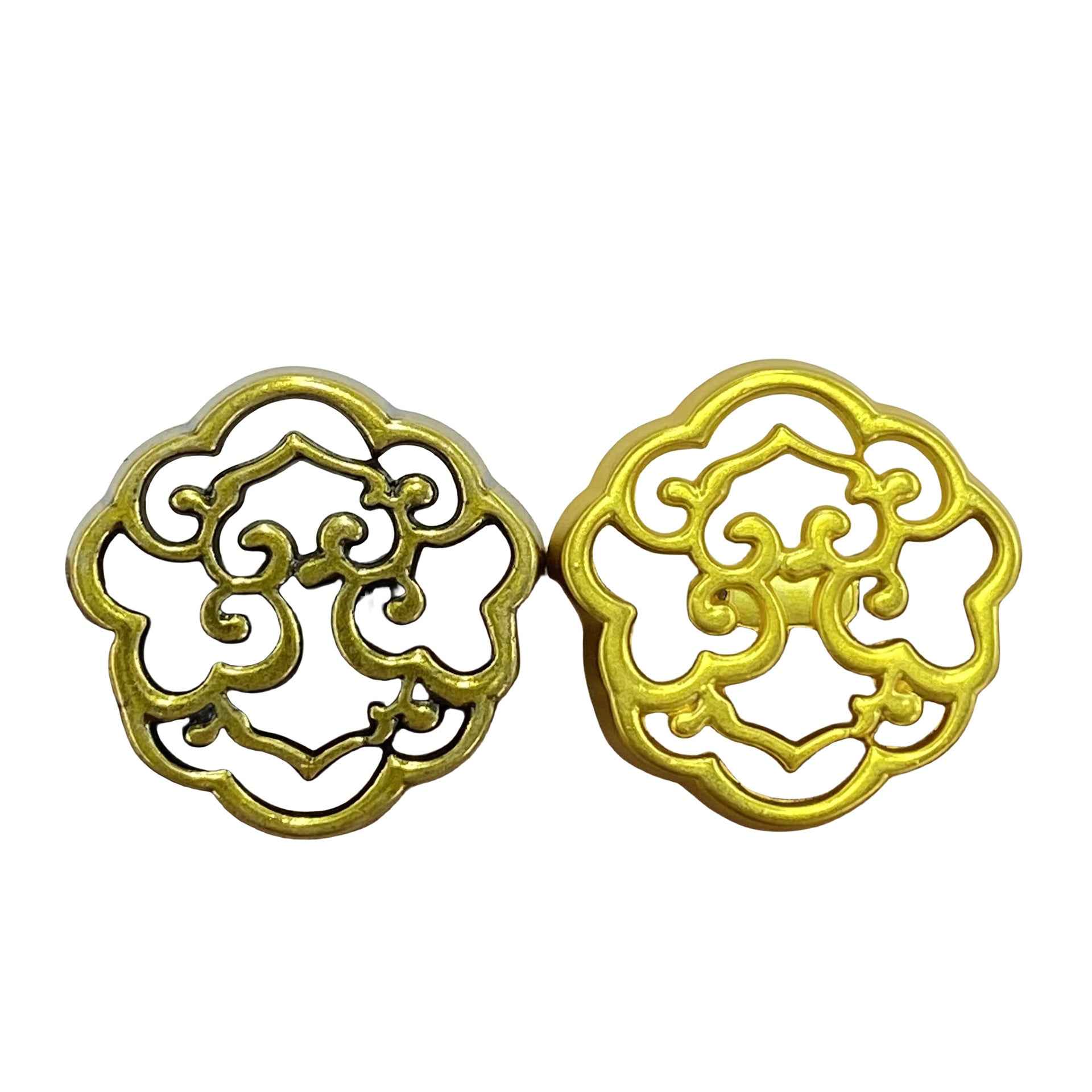 Lisa oma Hiina-stiilis disainidele kultuurilist elegantsi meie 12–21 mm kuldsete õõnsate õnnelike pilve metallist nööpidega. Need nööbid on kaunistatud keerukate õõnsate pilvemustritega, mis sümboliseerivad head õnne ja harmooniat, muutes need ideaalseks Hanfu, qipao ja teiste traditsiooniliste või kaasaegsete rõivaste jaoks. Rikkalik kuldviimistlus lisab luksusliku ja ajatu puudutuse, samas kui nööbi varre disain tagab lihtsa kinnituse paksematele kangastele. Valmistatud kvaliteetsest metallist, on need vastupidavad ja kulumiskindlad, tagades pikaajalise kasutuse. Saadaval erinevates suurustes (12 mm kuni 21 mm), pakuvad need nööbid mitmekülgsust erinevate stiilide ja projektide jaoks. Tõsta oma loomingut nende kaunite, kultuuriliselt inspireeritud nööpidega!