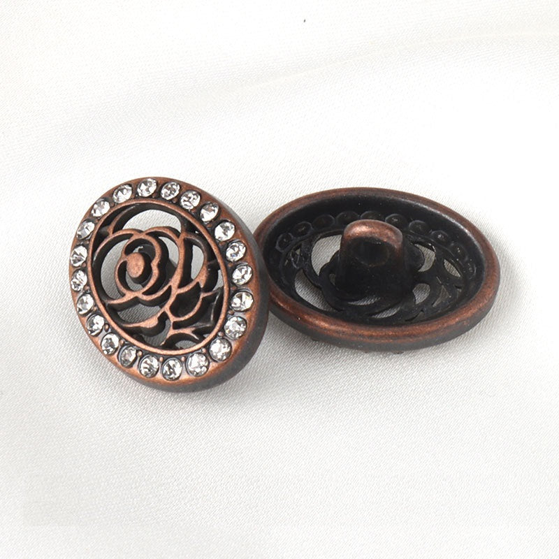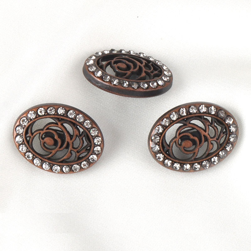 17.5mm punase pronksi ovaalsed vintage õõnes rhinestone metallnupud kudumitele ja kardiganitele 12tk