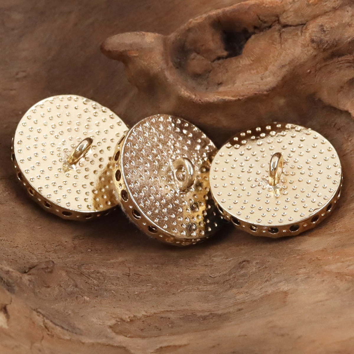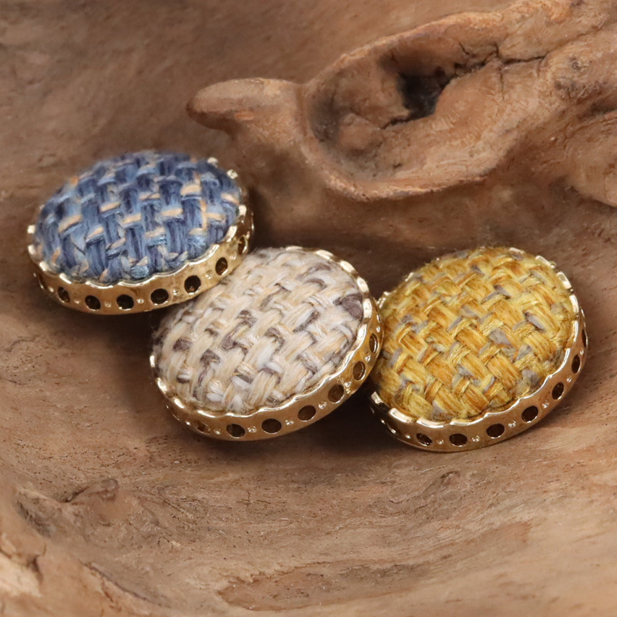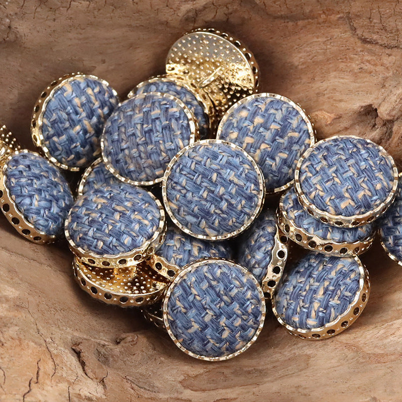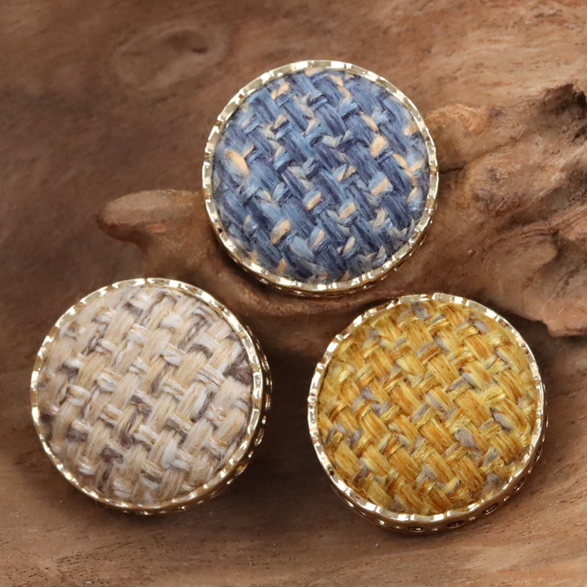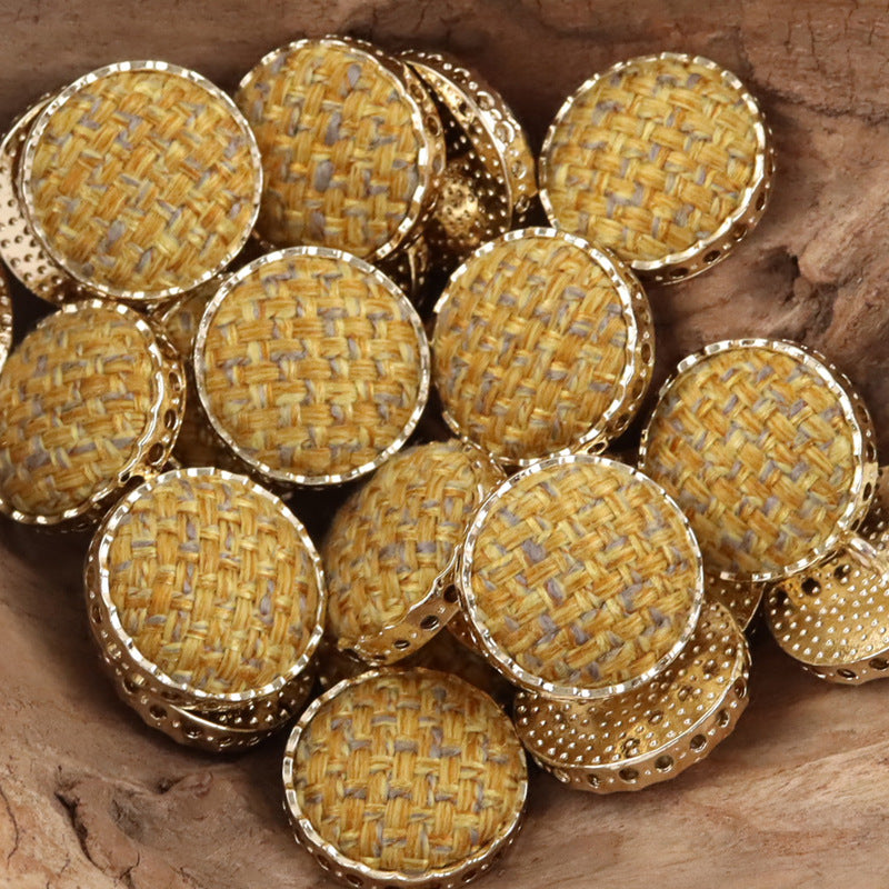 Meie ümmargused nupud on ideaalne valik ülikondadele, ühendades kuldse metalli elegantsi linase sarnase materjali unikaalse tekstuuriga õõnsa disaini kaudu.