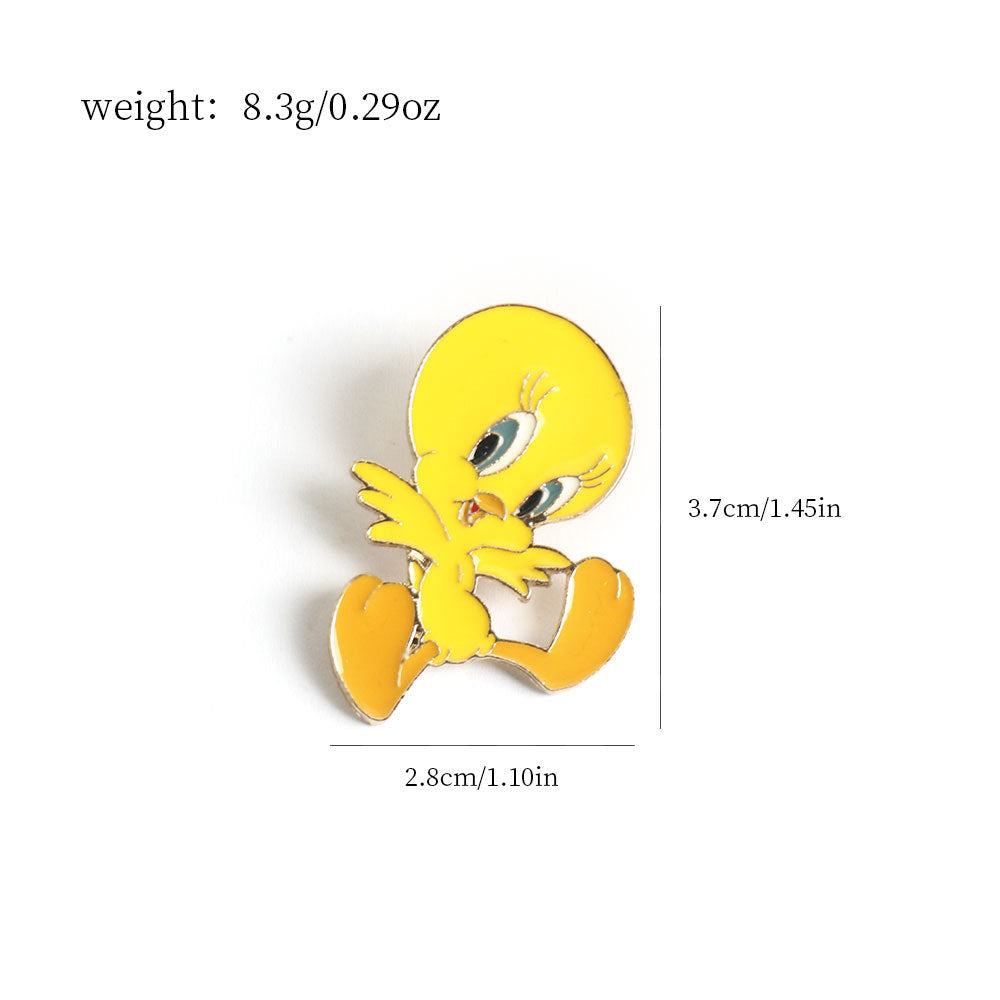 Ärata klassikaliste multifilmide võlu ellu meie Tweety ja Sylvesteri metallmärgiga. See 2 cm emailnõel kujutab Looney Tunesi ikoonilist duot, sobides ideaalselt vintage-animatsiooni fännidele. Nõelal on Tweety, nutikas lind, ja Sylvester, tema visalt püsiv kassivaenlane, dünaamilises stseenis, mis toob nende trikkid ellu. Valmistatud hoolikalt detailidele keskendudes ja kaetud vastupidava emailiga, on see märk kollektsionääridele ja entusiastidele hädavajalik. Võluv aksessuaar, mis lisab mängulist hõngu igale riietusele või kollektsioonile.