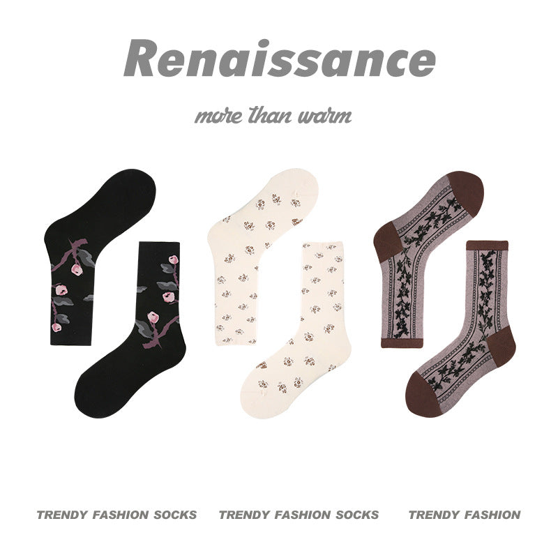 Elegant Floral Pattern Mid-Calf Socks, One Size Fits Most (EU 35-40 / US 5-8)