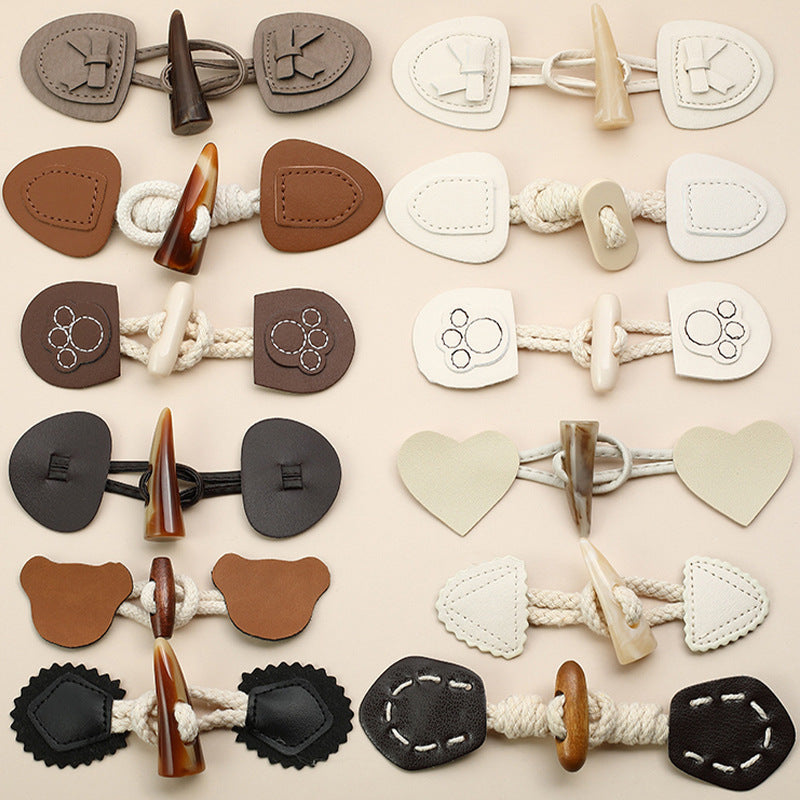 Zakoračite u svijet luksuza s našom kolekcijom kožnih gumba. Svaki gumb je pažljivo izrađen od visokokvalitetne kože, osiguravajući trajnost i sofisticirani izgled. Savršeni za modne dizajnere, entuzijaste šivanja i DIY majstore, naši kožni gumbi podižu svaki projekt svojom bogatom teksturom i profinjenim izgledom. Istražite naš raznoliki asortiman, od klasičnih okruglih gumba do modernih ukrasnih stilova, dostupnih u raznim bojama i veličinama koje odgovaraju vašoj jedinstvenoj viziji. Bilo da dodajete završni dodir ručno izrađenom odjevnom predmetu ili osvježavate staru stvar, naši kožni gumbi su savršen spoj funkcionalnosti i mode.