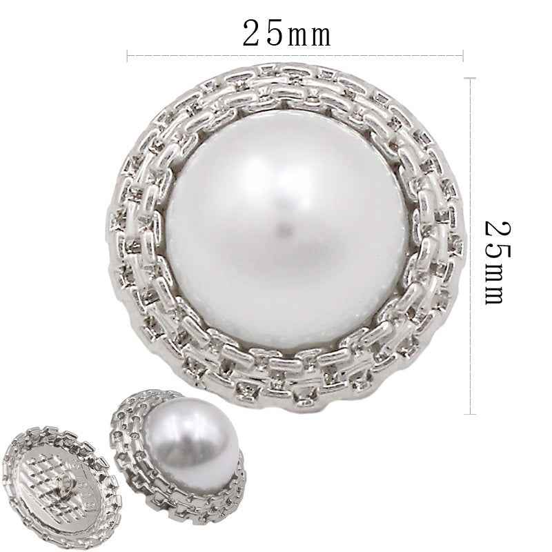 17mm/21mm/25mm Srebrni okrugli gumbi od metala s biserima 12 komada