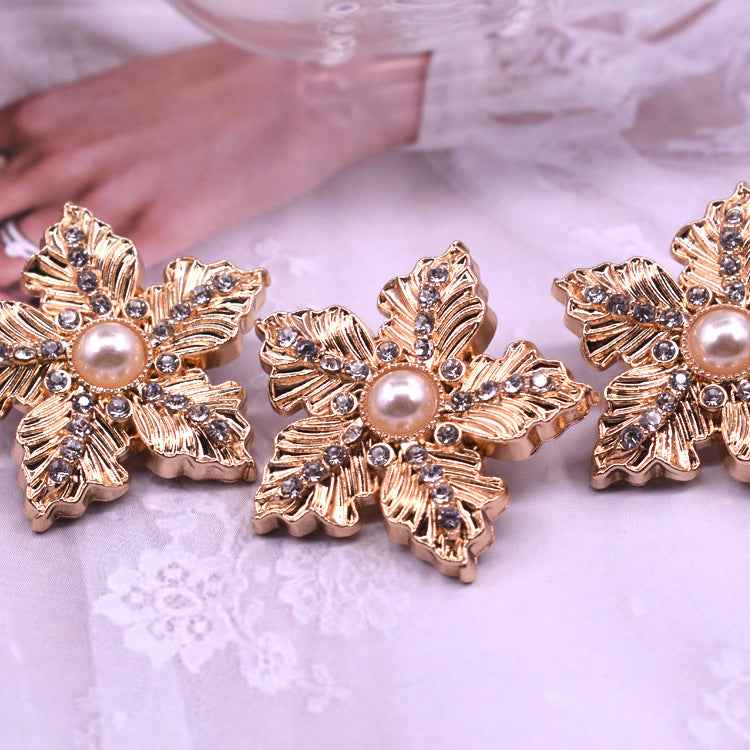 Zlatni gumbovi s dijamantnim biserom u obliku pahuljice za kardigane, 10 komada