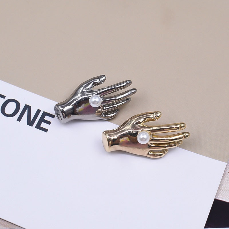 27x13mm zlatni i srebrni metalni gumbi u obliku dlana s biserom 20 komada