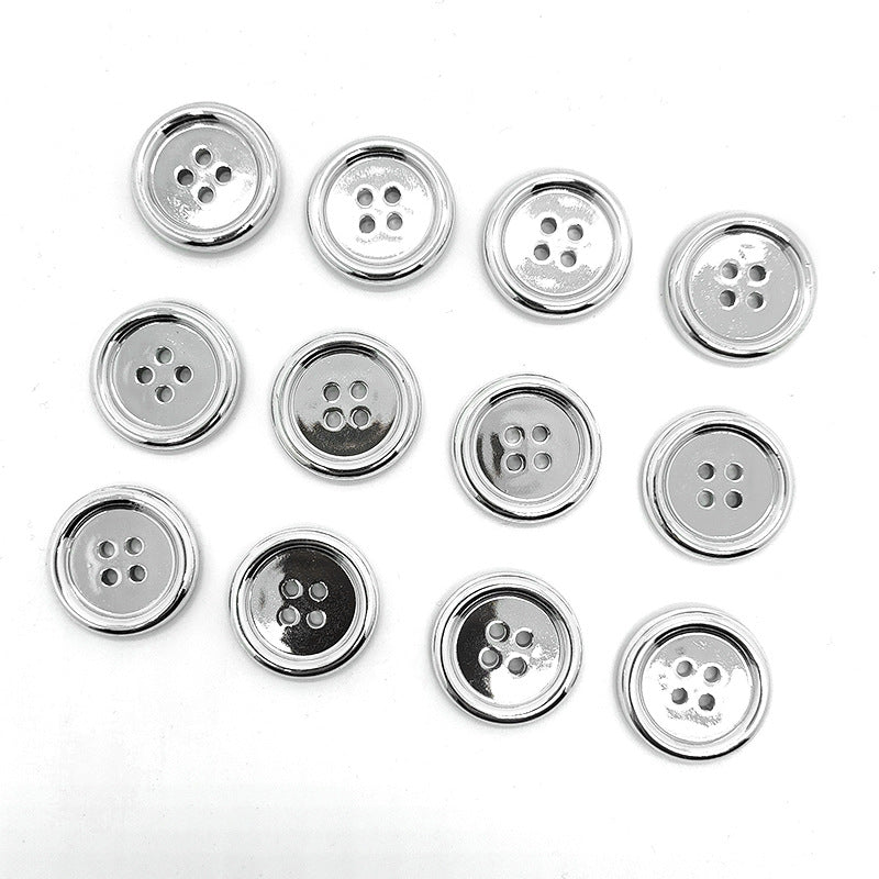 44L Elektroplatinirani plastični gumb sa srebrnim rubom, okrugli, s četiri rupe, 60 komada