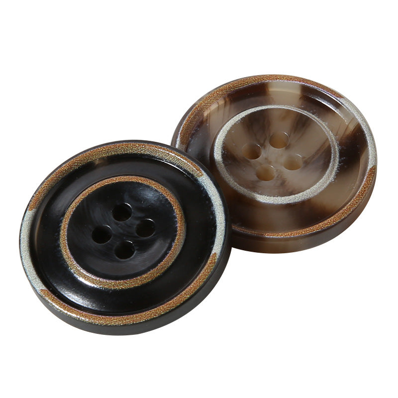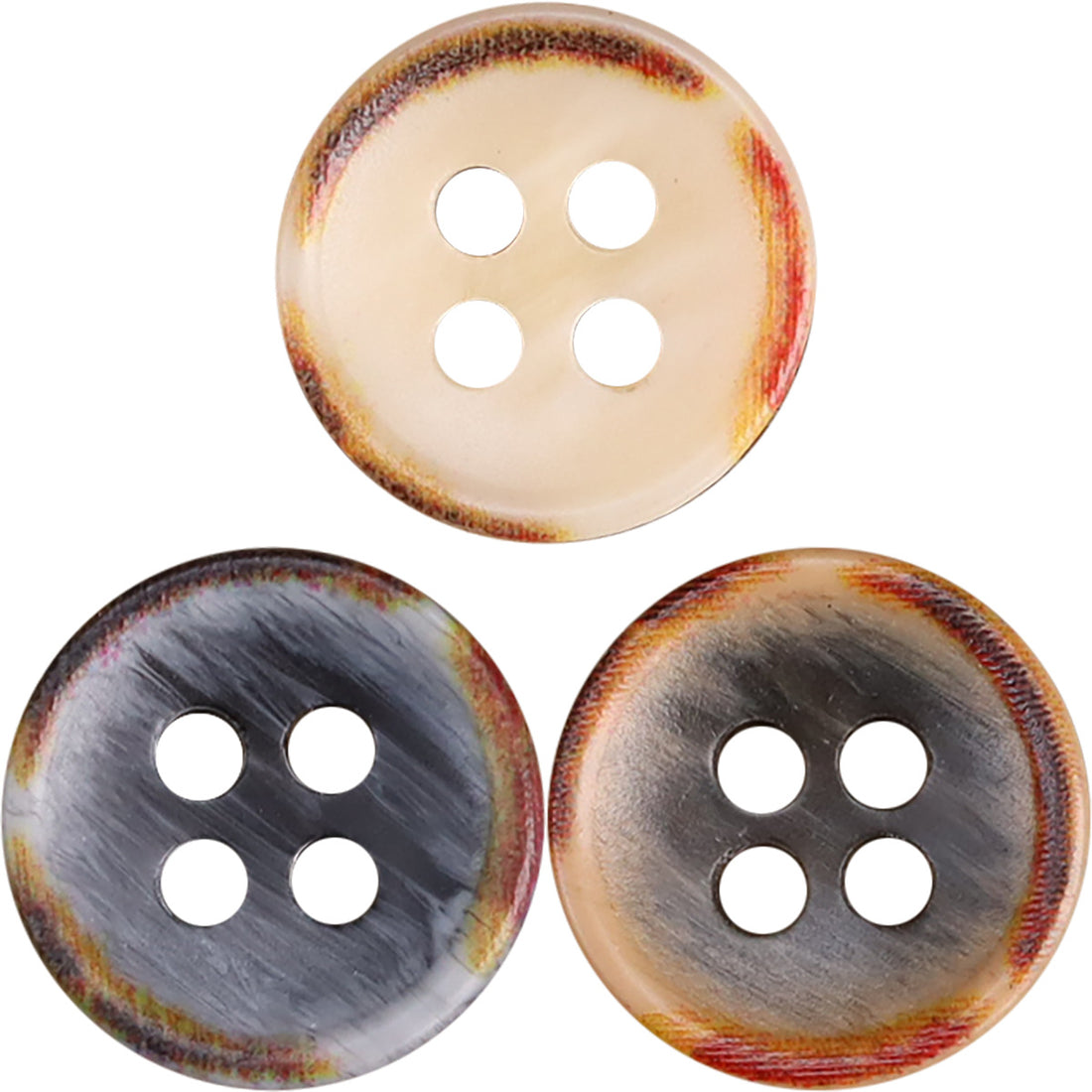 Reciklirani gumb za kaput od smole s izgorjelim rubom i četiri rupe, pakiranje od 30 komada (5 veličina)
