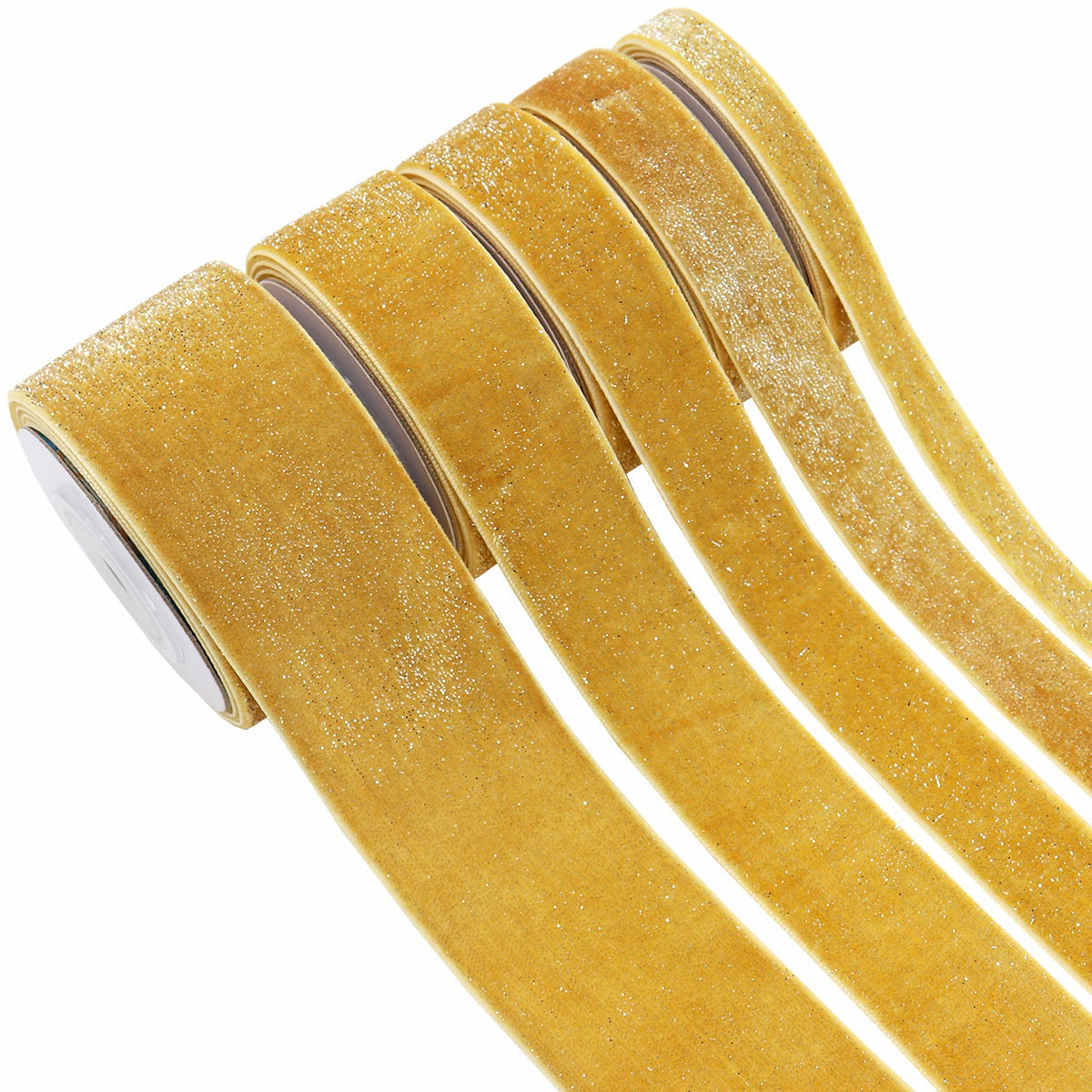 Set žutih baršunastih vrpci sa srebrnim detaljima 10/16/19/25/38mm, 5 veličina, 25 jardi (5 jardi po roli)