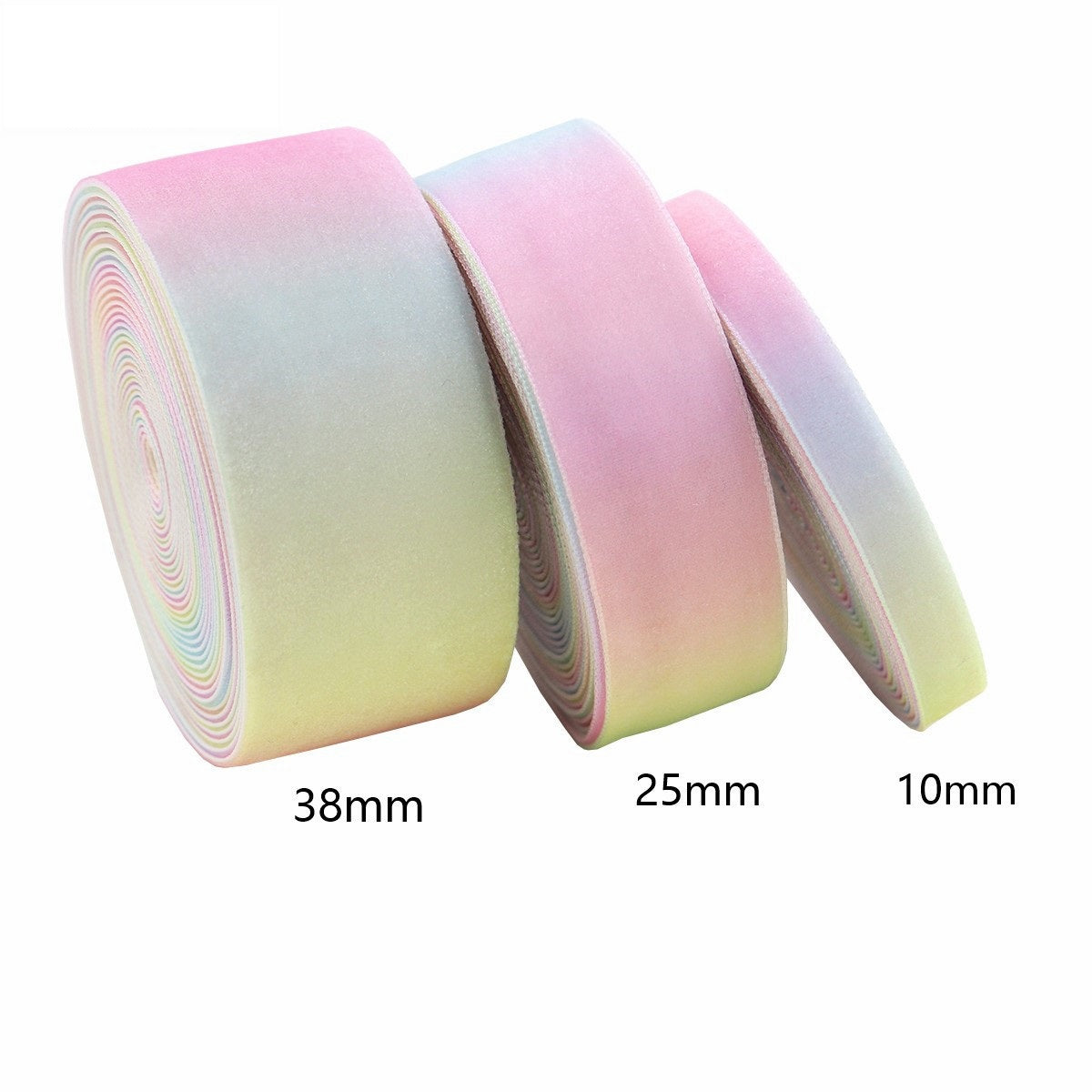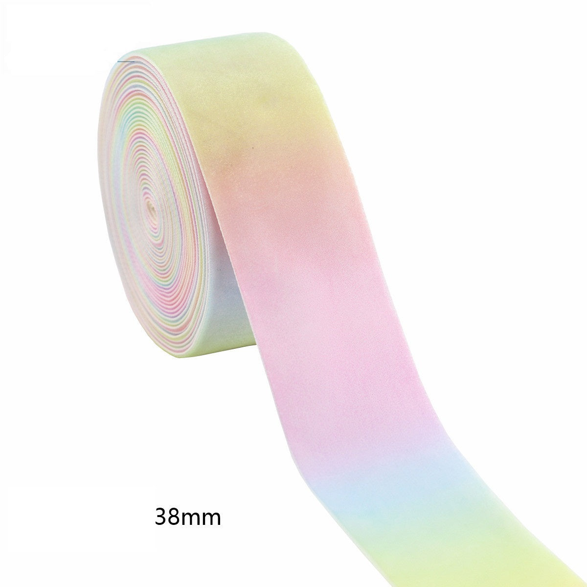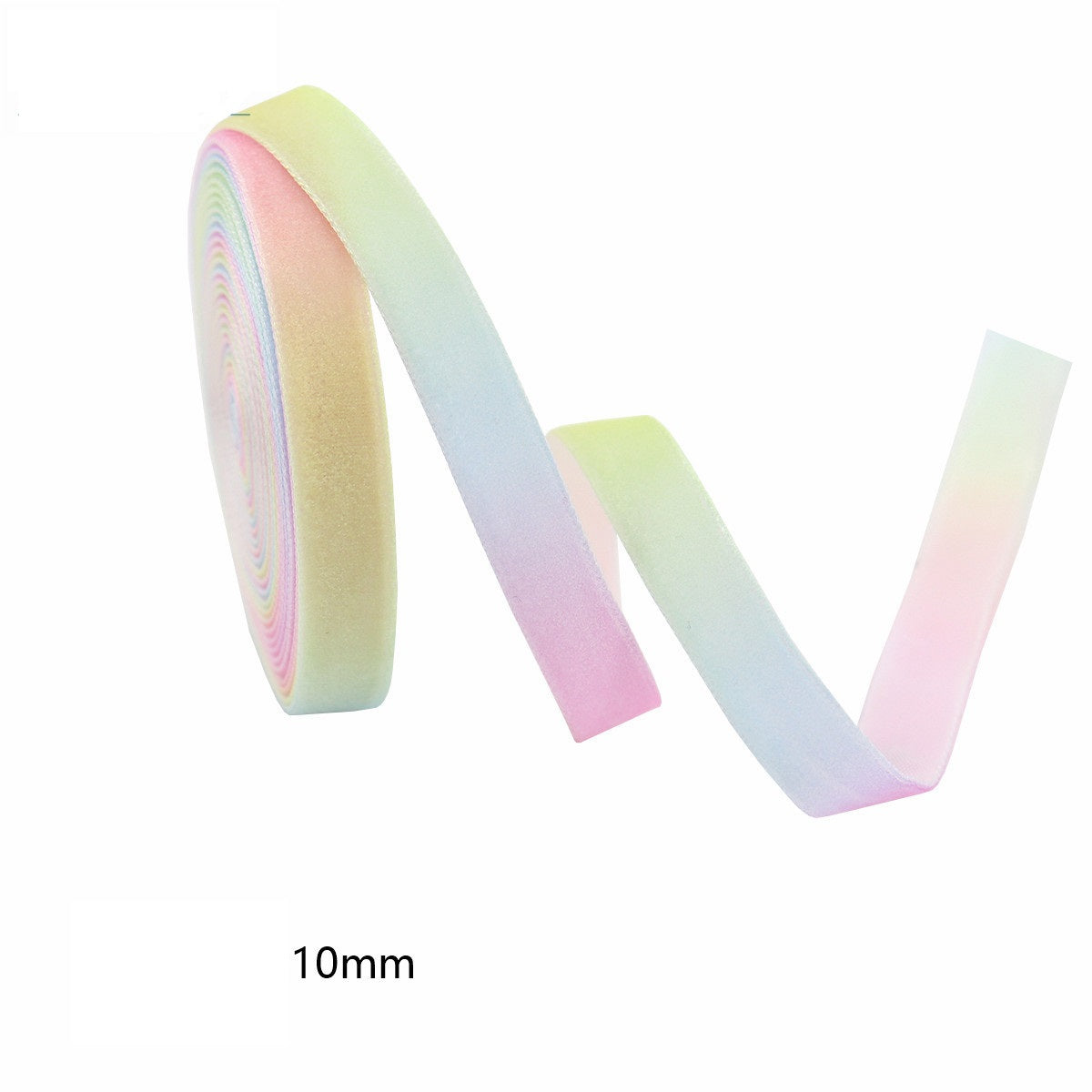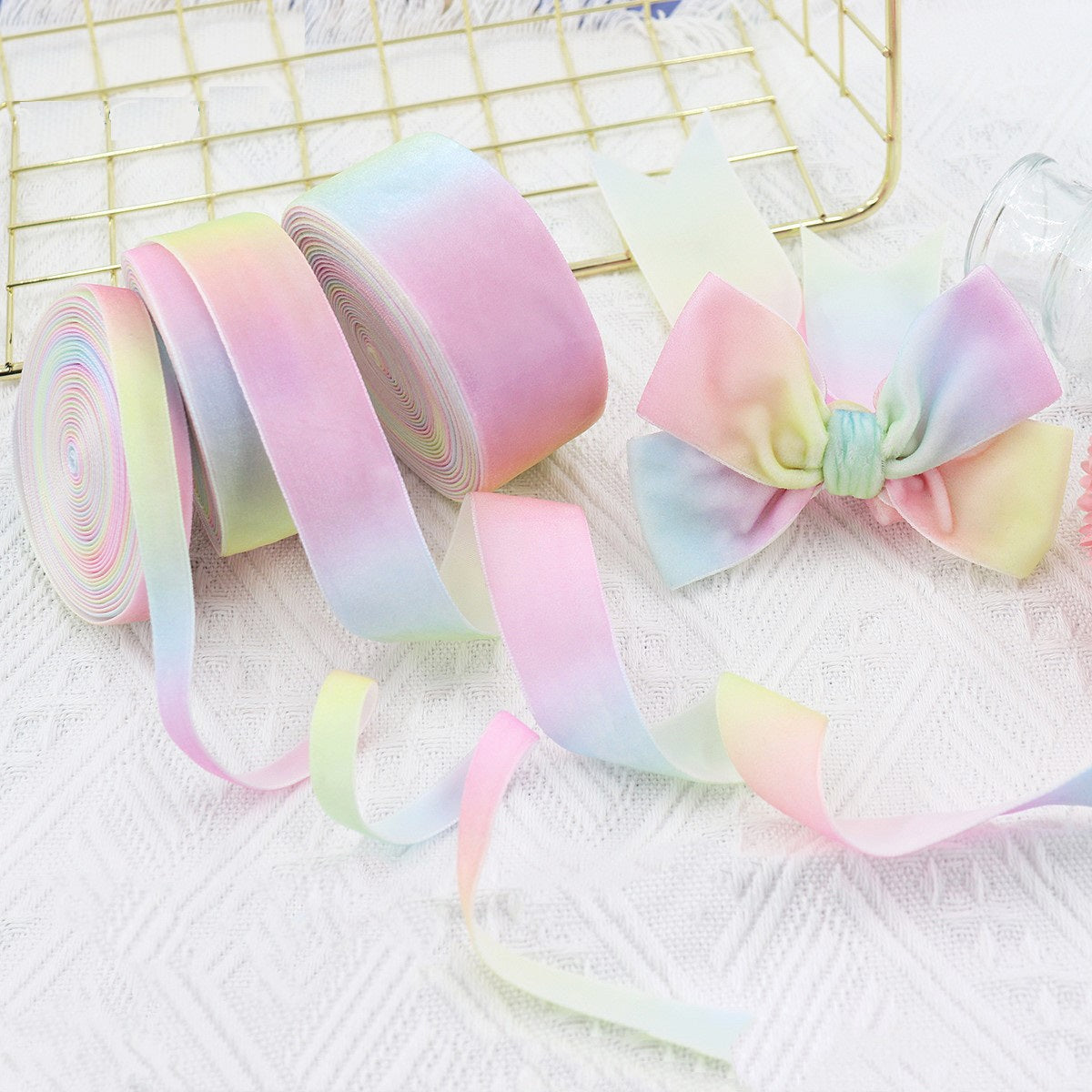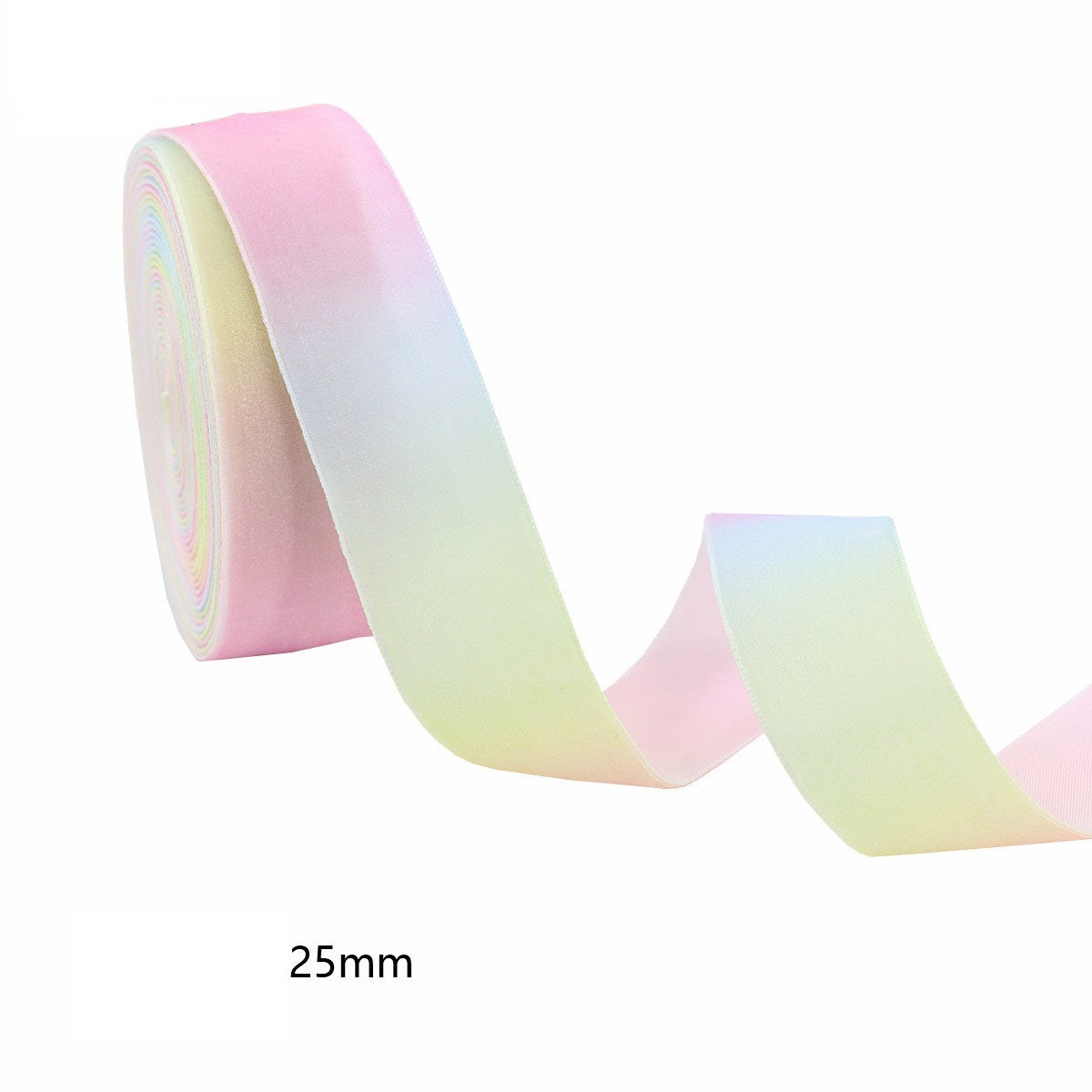 Dodajte eksploziju boje i luksuza svojim kreativnim projektima s ovom zadivljujućom 10/25/38MM Velvet Gradient Candy Color vrpcom! S prekrasnim gradijentnim dizajnom u živim bombonskim bojama, ova vrpca je savršena za stvaranje upečatljivih mašni, ukrašavanje poklona ili dodavanje razigranog detalja DIY dekoru.