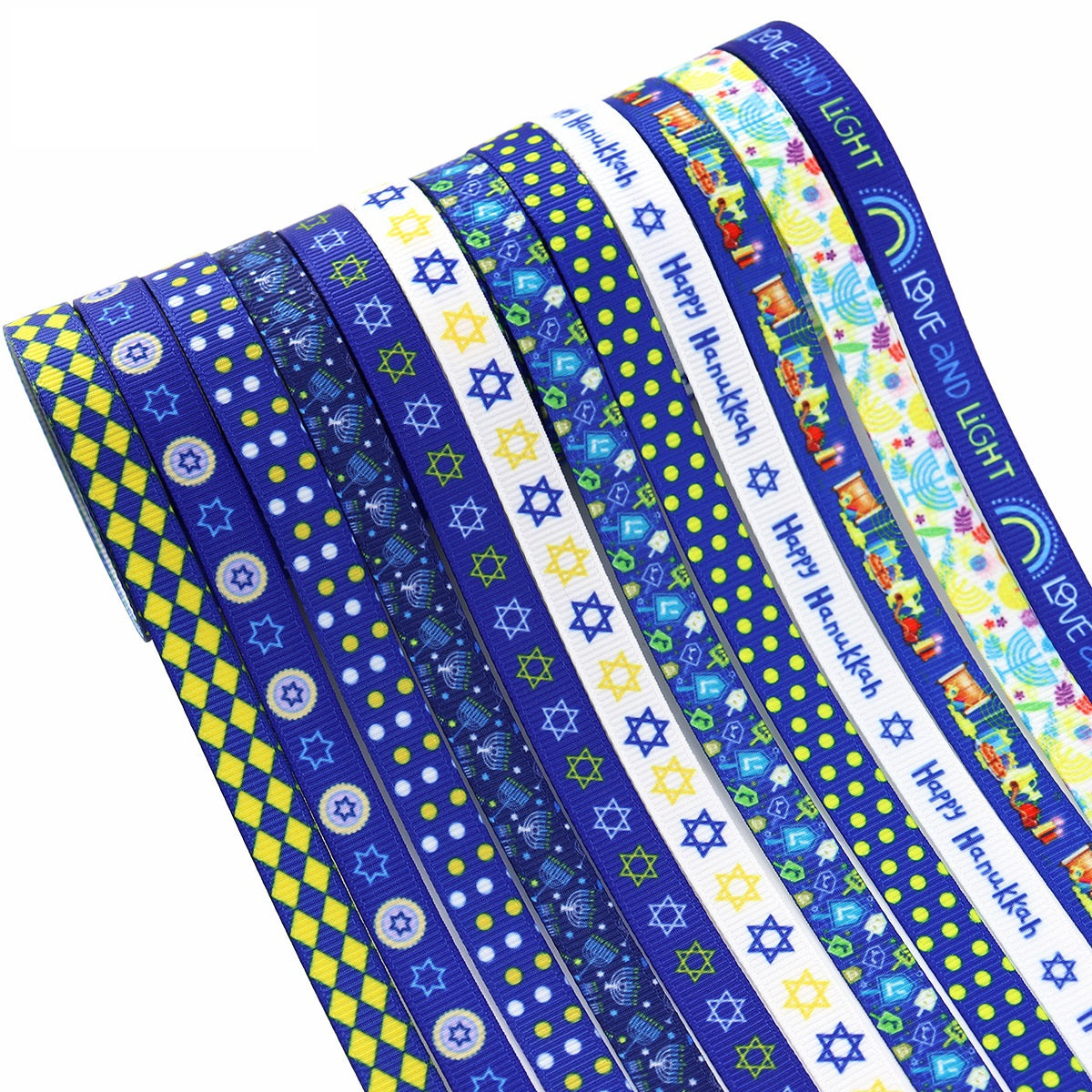 10mm Hanukah vrpca sa Davidovom zvijezdom, Menorom, Dreidel 12 pakiranje