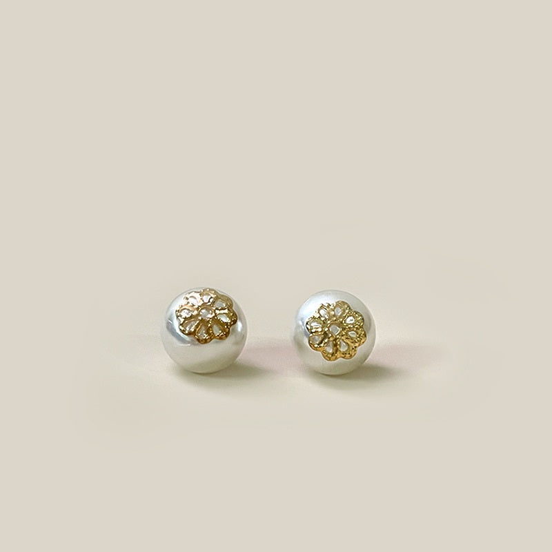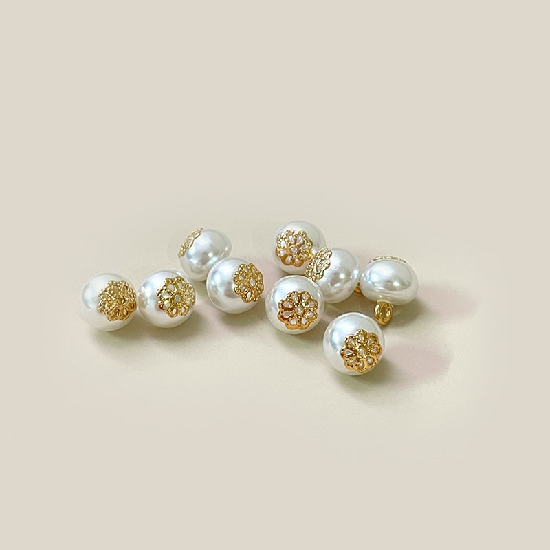 10mm Bijeli Plastični Biser Bakrena Cvjetna Ručno Šivana Metalna Dugmad Sa Noga 40 komada