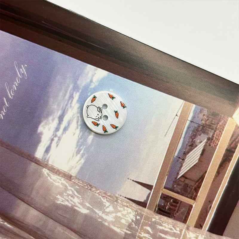 Ovi gumbi od školjke promjera 11,5mm/15mm dizajnirani su da unesu dozu slatkoće u dječju odjeću. Okrugla struktura s 2 rupe čini ih jednostavnima za pričvršćivanje. Sa šarmantnim slikama malih zečića i mrkvi, savršeni su za ukrašavanje dječjih košulja, kardigana i džempera. Materijal školjke ima glatku teksturu i prirodni sjaj. Ovi gumbi mogu dodati zabavan i živahan element dječjim odjevnim kombinacijama, čineći ih privlačnijima i jedinstvenijima. Sigurno će ih djeca voljeti i učiniti oblačenje zabavnijim iskustvom.