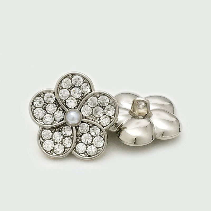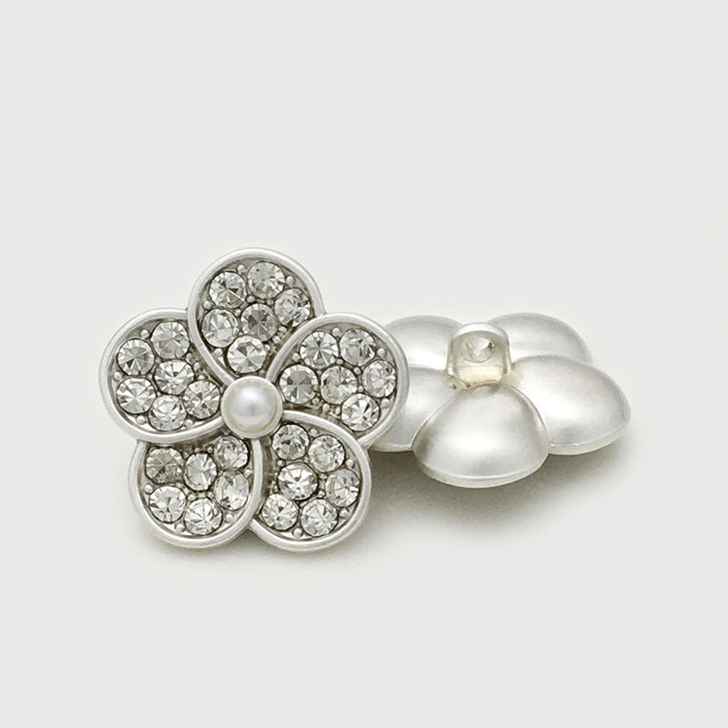 Svaki gumb ima pažljivo izrađen cvijet, ukrašen sjajnim biserima i blistavim dijamantima. Kombinacija stvara luksuzan i upečatljiv efekt. Metalna konstrukcija osigurava izdržljivost, čineći ih prikladnima za razne odjevne predmete. Bilo da izrađujete vjenčanicu, svečanu haljinu ili elegantnu bluzu, ovi gumbi dodaju dašak raskoši i šarma, čineći vaš komad zaista posebnim.