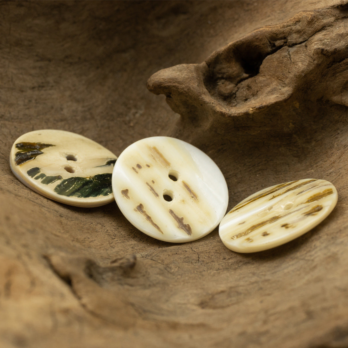 Svi gumbi ovdje su visoke kvalitete. Međutim, budući da su izrađeni od prirodnih materijala, primijetit ćete da se završna obrada i boja mogu malo razlikovati od gumba do gumba