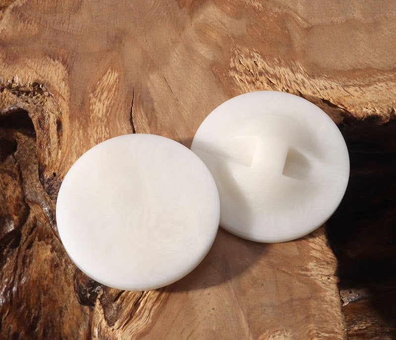 Ovi gumbi, veličine od 11,5 do 25 mm, imaju okrugli ravni dizajn sa skrivenim rupama. Izrađeni od prirodnog voća, izvrstan su izbor za razne vanjske odjevne predmete poput kardigana, odijela, kaputa i balonera za muškarce i žene.