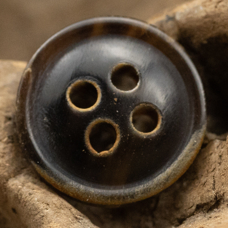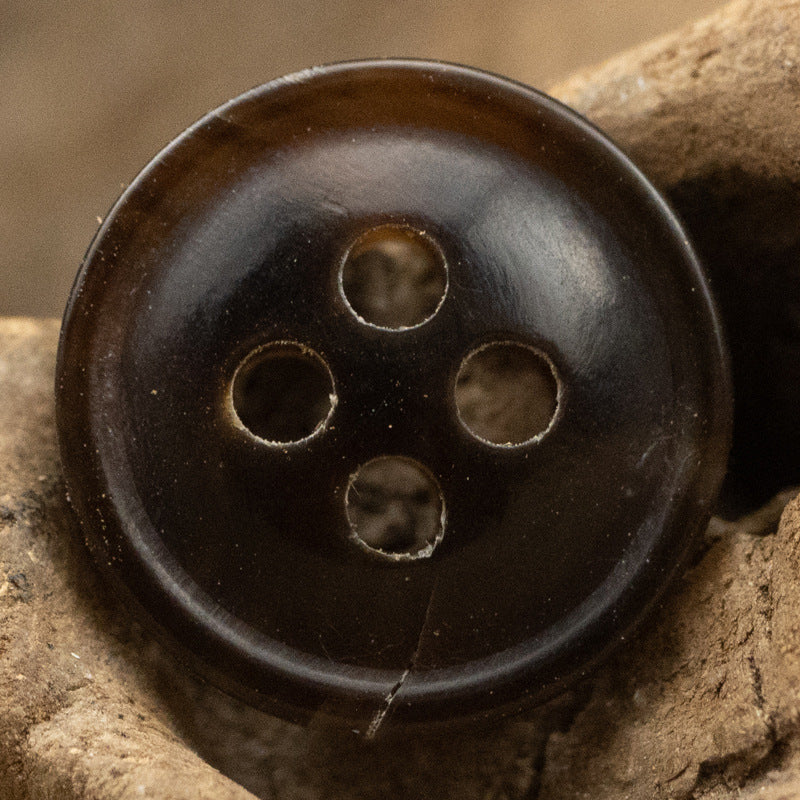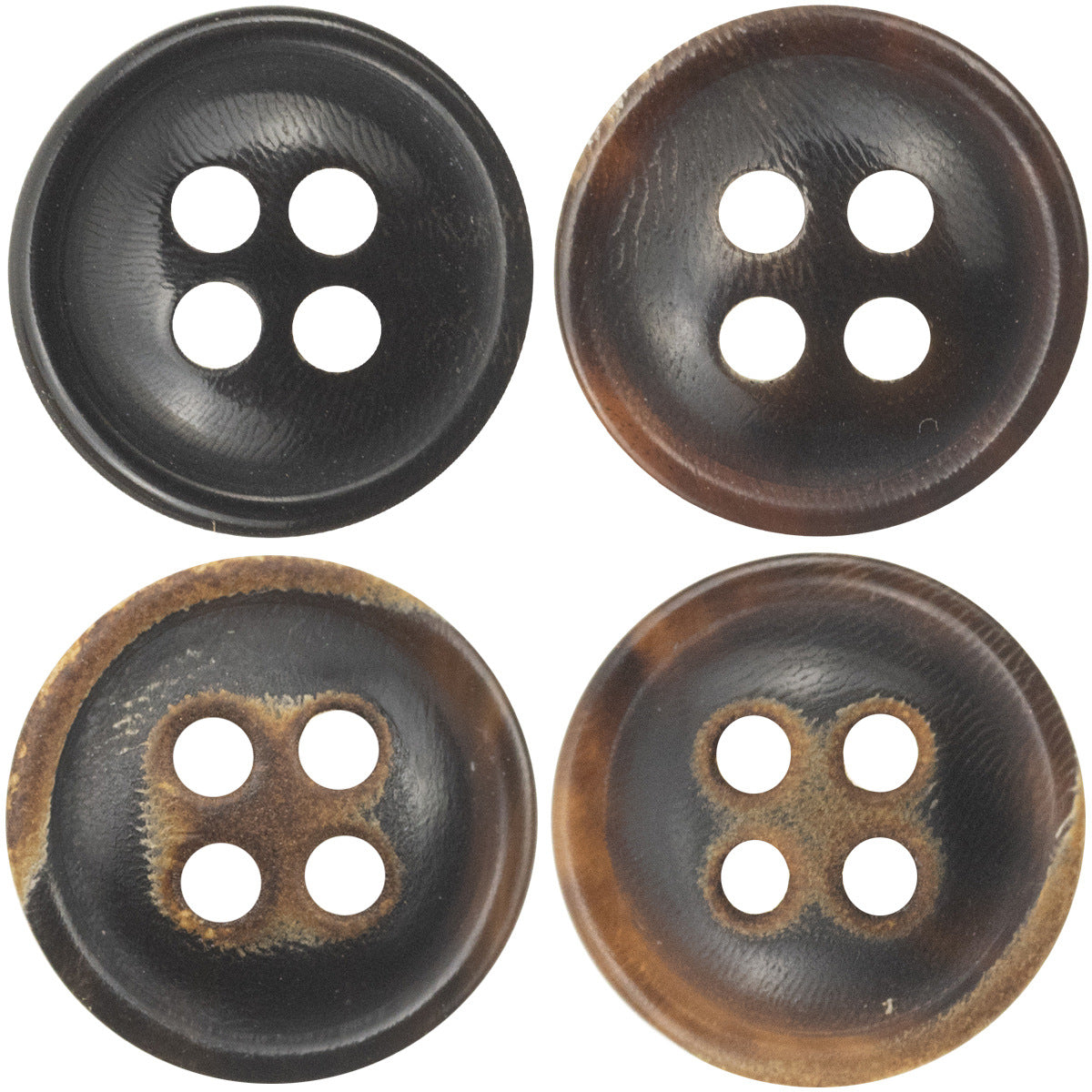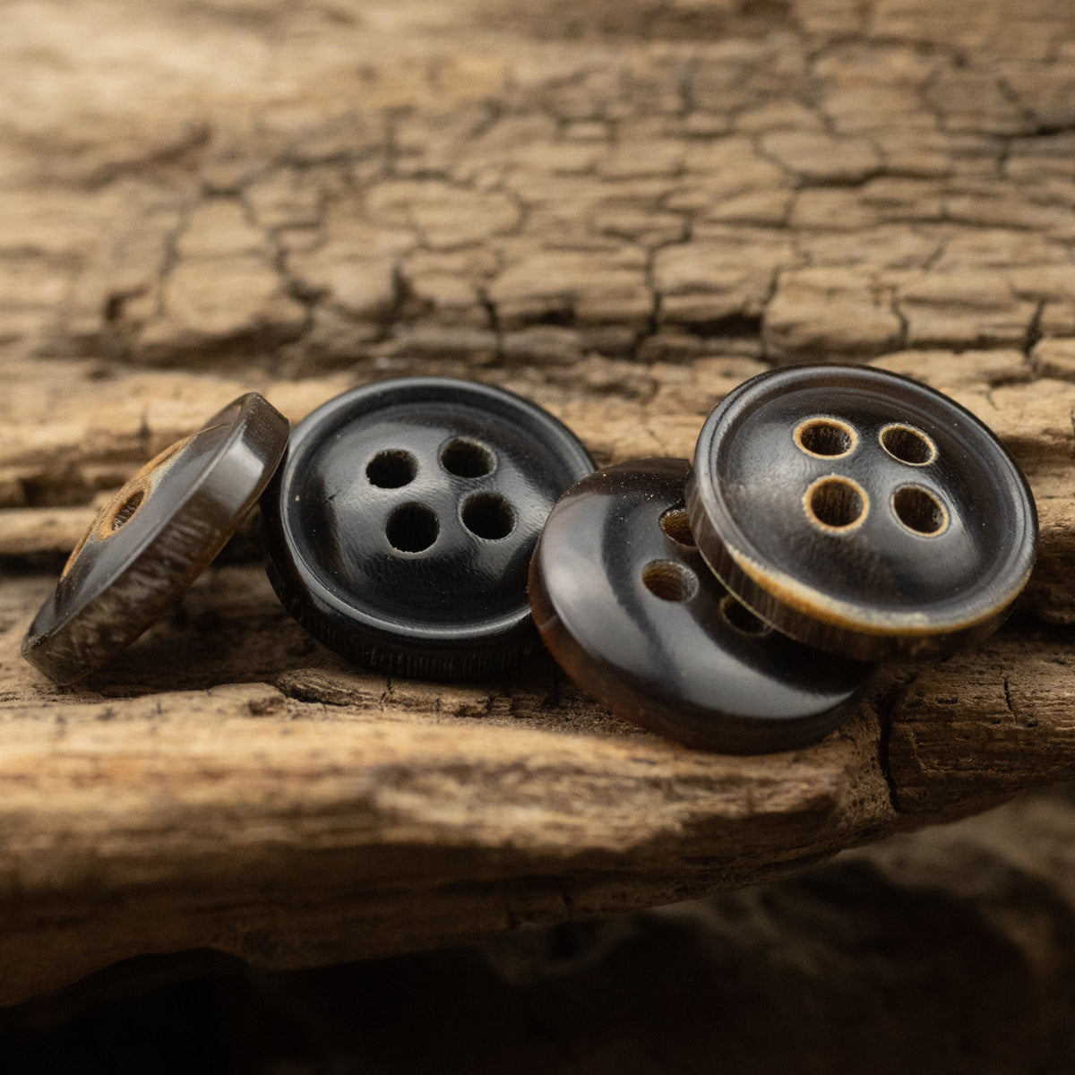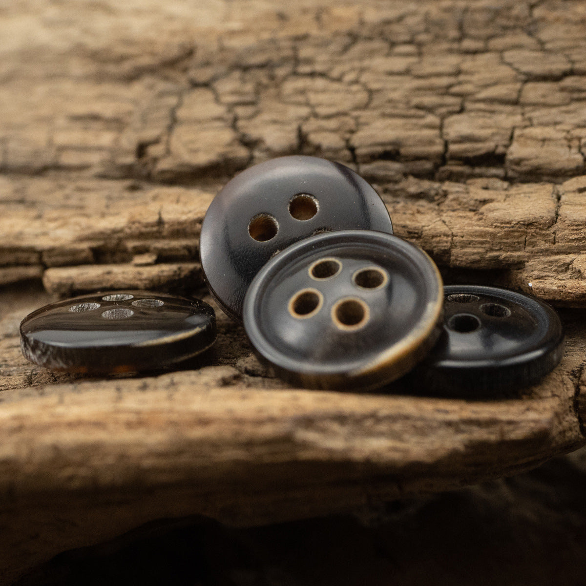 11.5MM Dugmad za košulju od crnog roga s izgorjelim rubom i četiri rupe, pakiranje od 24 komada