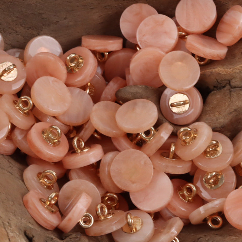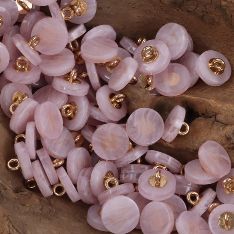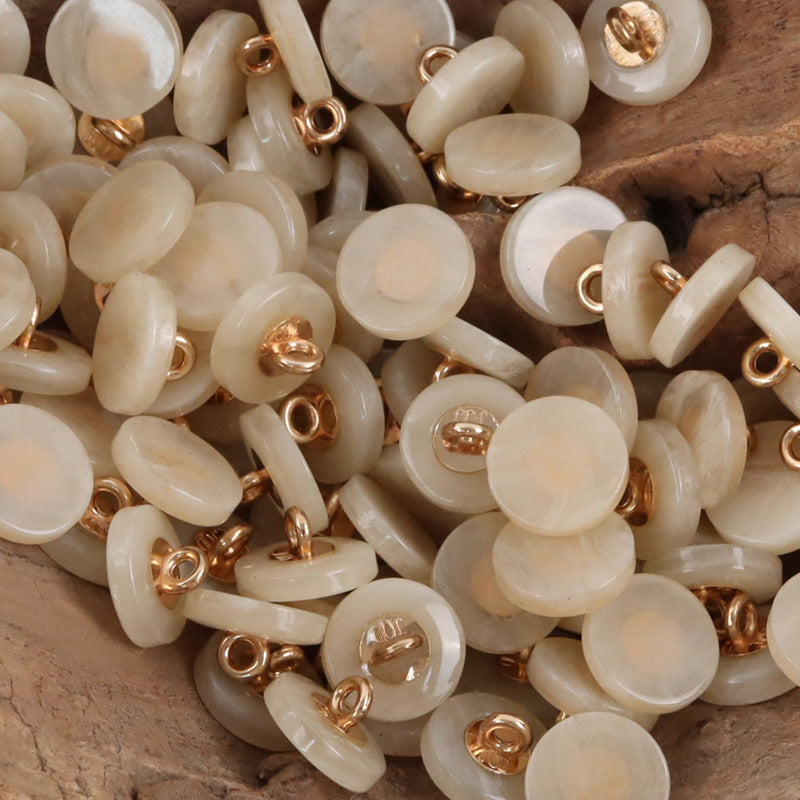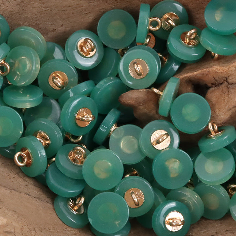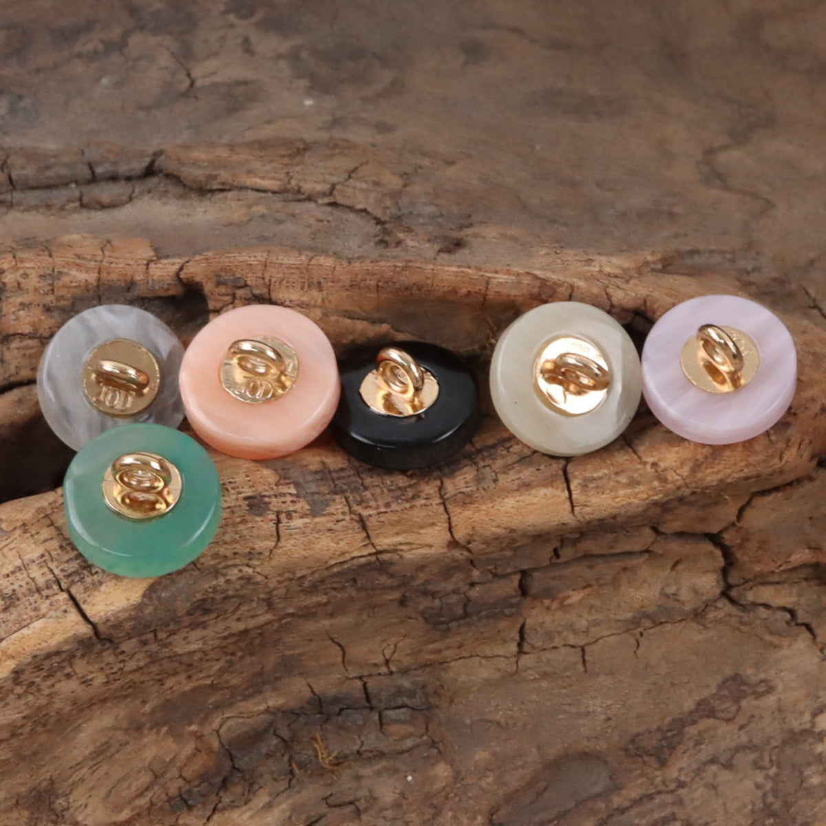 Ovi okrugli gumbi promjera 11,5 mm izrađeni su od smole koja imitira žad i imaju metalni dio za pričvršćivanje. Kombiniraju elegantan izgled smole nalik žadu s čvrstoćom metala. Idealni za razne odjevne predmete, predstavljaju moderan i izdržljiv izbor.