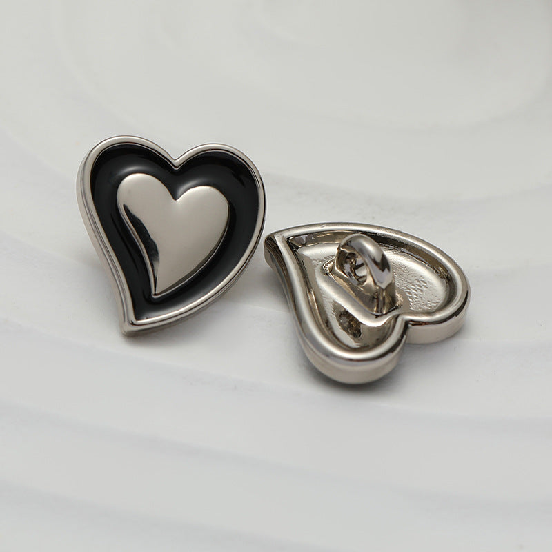 Bilo da želite dodati završni dodir svojoj odjeći ili stvoriti prilagođeni komad odjeće, ovaj crni gumb od srebrnog metala u obliku srca s uljanim premazom izvrstan je izbor.