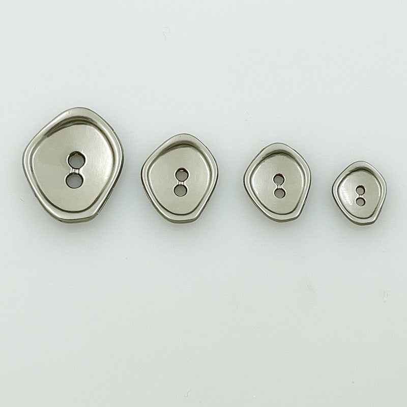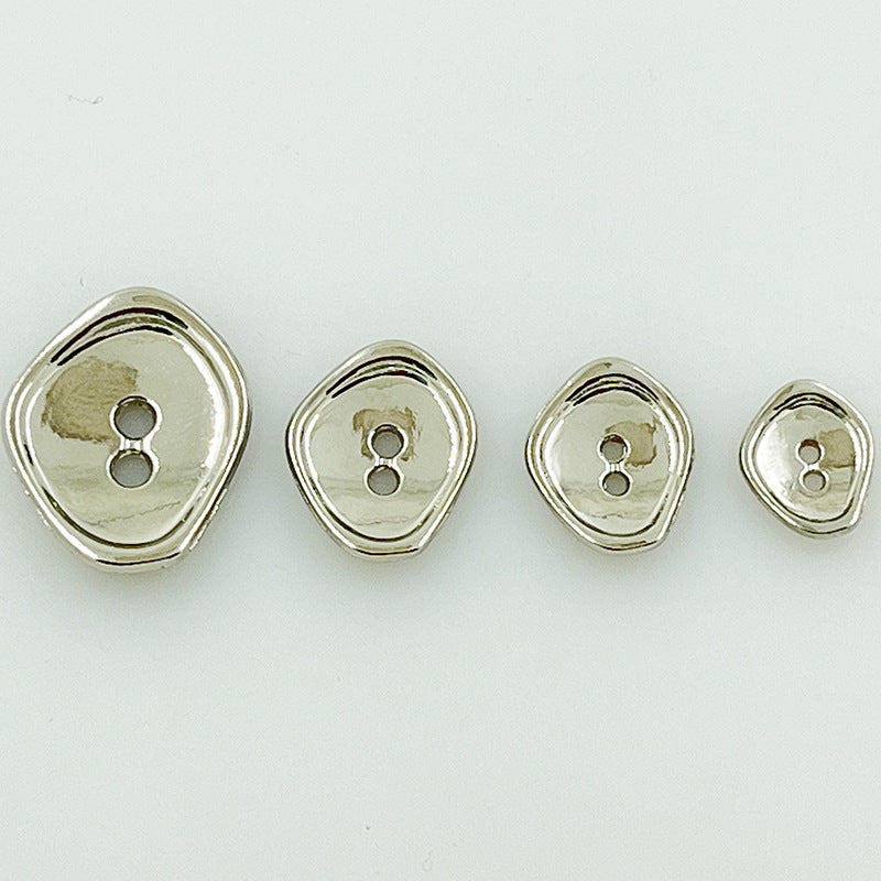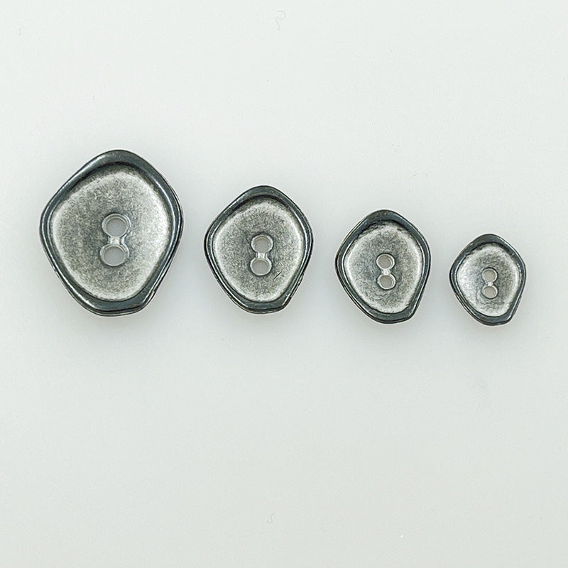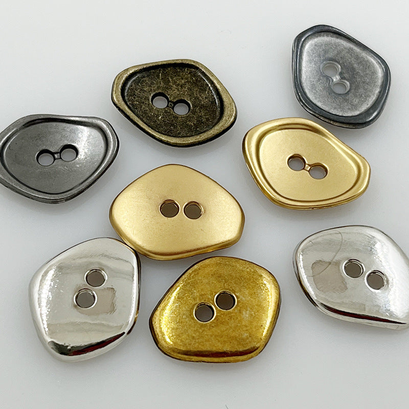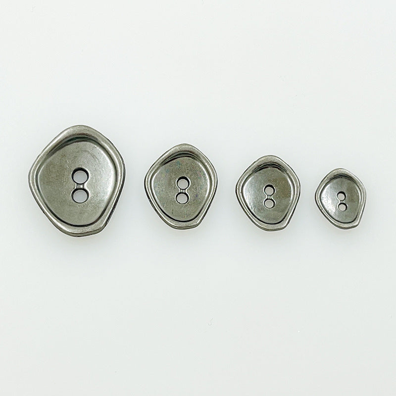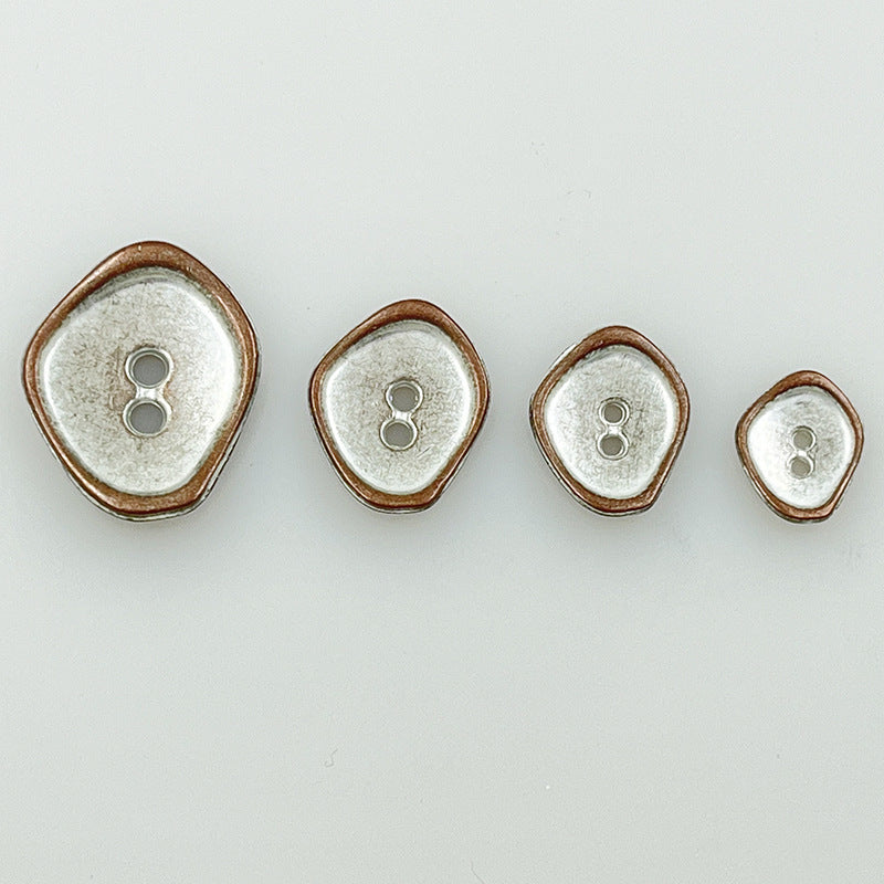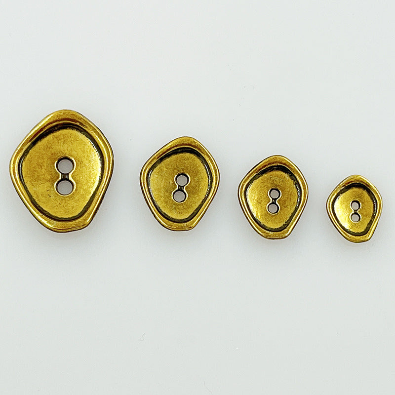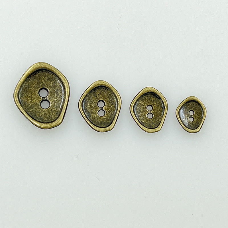 Ovi jedinstveni metalni gumbi nepravilnog oblika savršeni su za dodavanje daška vintage šarma vašoj odjeći i rukotvorinama. Dostupni u četiri veličine—12mm, 15mm, 17mm i 22mm—posjeduju dizajn s dva otvora za jednostavno ručno šivanje. Izrađeni od visokokvalitetnog metala, ovi gumbi dolaze u završnim obradama antiknog bakra i kalaja, nudeći rustikalni i elegantan izgled. Njihovi nepravilni oblici i klasične boje čine ih idealnima za jakne, kardigane i druge odjevne predmete. Bilo da se koriste za DIY projekte ili osvježavanje vaše garderobe, ovi gumbi su svestran i stilski izbor.
