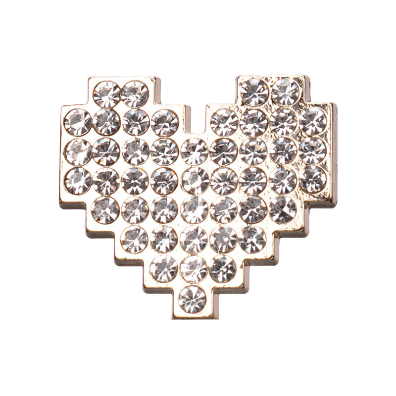 Gumb u obliku srca s biserima i metalnim cirkonima 12,5/15/23mm - Gumbi za dječju odjeću i džempere, pakiranje od 15 (3 veličine)