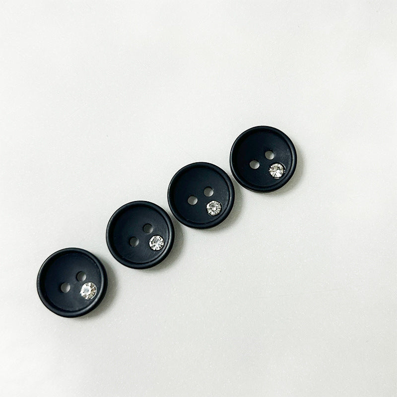 12,5/15 mm okrugli crno-bijeli gumbi od smole s umetkom od cirkona i dva otvora 100 kom