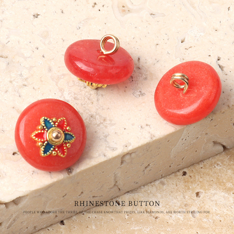 12mm narančasto crveni gumbi od žada sa zlatnim cvjetnim drškama za kineske košulje 12 komada