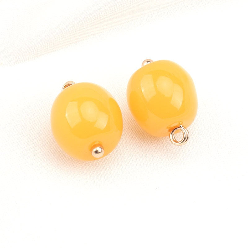 Ovi 12mm žuti gumbi od smole, ukrašeni zlatnim zakovicama, savršeno se slažu s kineskim ručno izrađenim svilanim cheongsamom i tang odijelom. Svijetlo žuta boja perli dodaje živahan i luksuzan dodir. Zlatne zakovice pojačavaju ukupnu eleganciju i profinjenost.