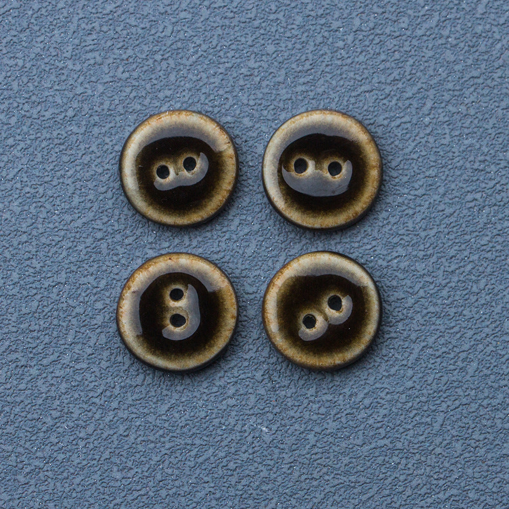 Ovi keramički gumbi promjera 14mm su stilski izbor. Imaju okrugli oblik s dva otvora i izrađeni su ručno. Crno-smeđa glazirana završna obrada daje im sofisticiran i klasičan izgled.