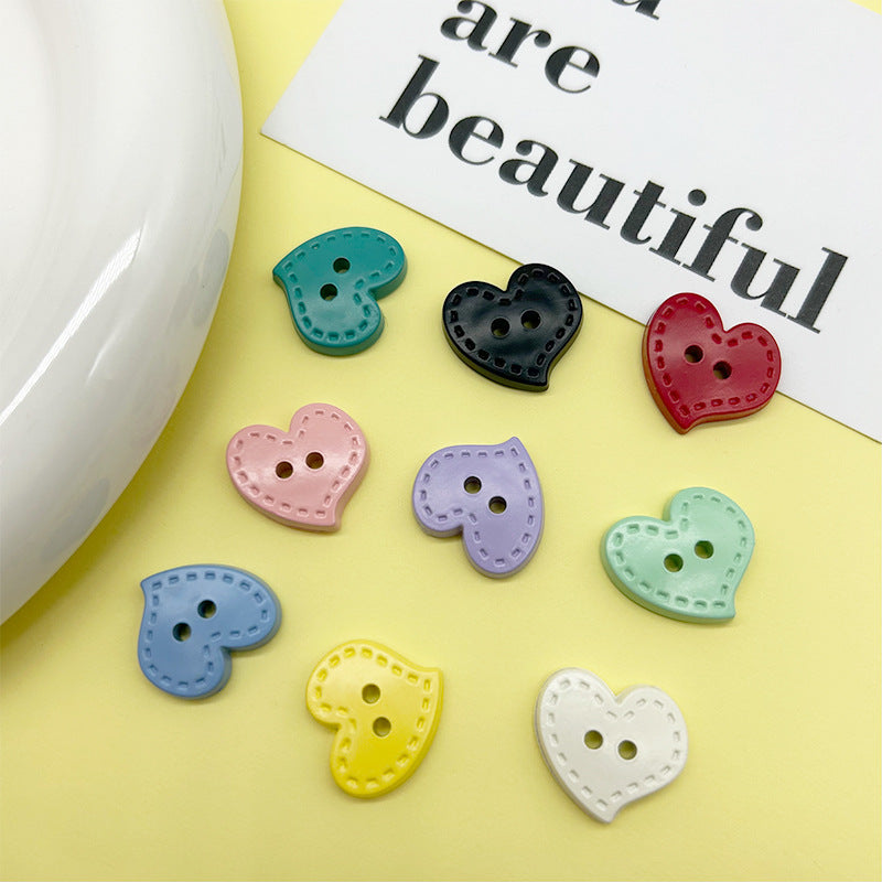 Ovi plastični gumbi veličine 15/18 mm imaju jedinstveni dizajn srca s točkicama i dva oka, predstavljeni u trendi macaron bojama. Imaju dva otvora, što pruža fleksibilnost za ljubitelje DIY projekata. Idealni su za razne kreativne projekte poput ukrašavanja odjeće, torbi ili kućnih dekoracija. Gumbi su izrađeni od visokokvalitetne plastike, što osigurava izdržljivost i glatku završnu obradu. Njihove mekane i pastelne boje u kombinaciji s preslatkim dizajnom srca s očima čine ih posebnima, omogućujući vam da dodate dozu razigranosti i šarma vašim ručno izrađenim kreacijama te izrazite svoj jedinstveni estetski osjećaj i kreativnost.