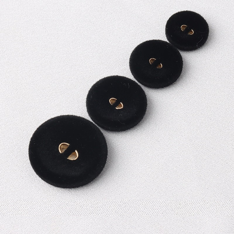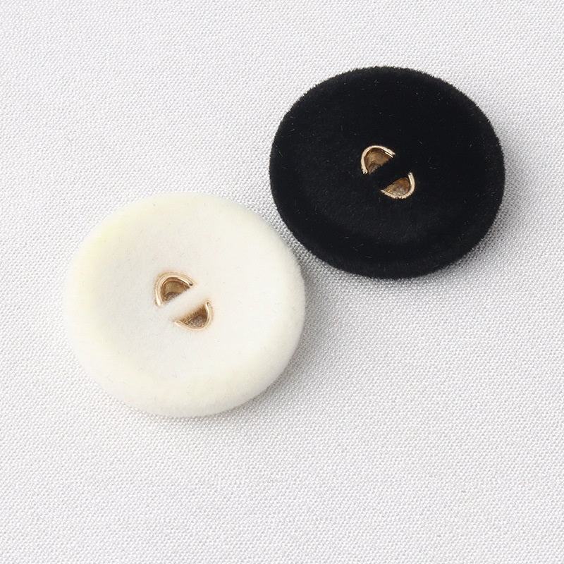 15 - 25mm Jednostavni Bijeli & Crni Flokirani Baršunasti Okrugli Gumbi s Dva Otvora za Kapute & Džempere 20 Komada (4 Veličine)
